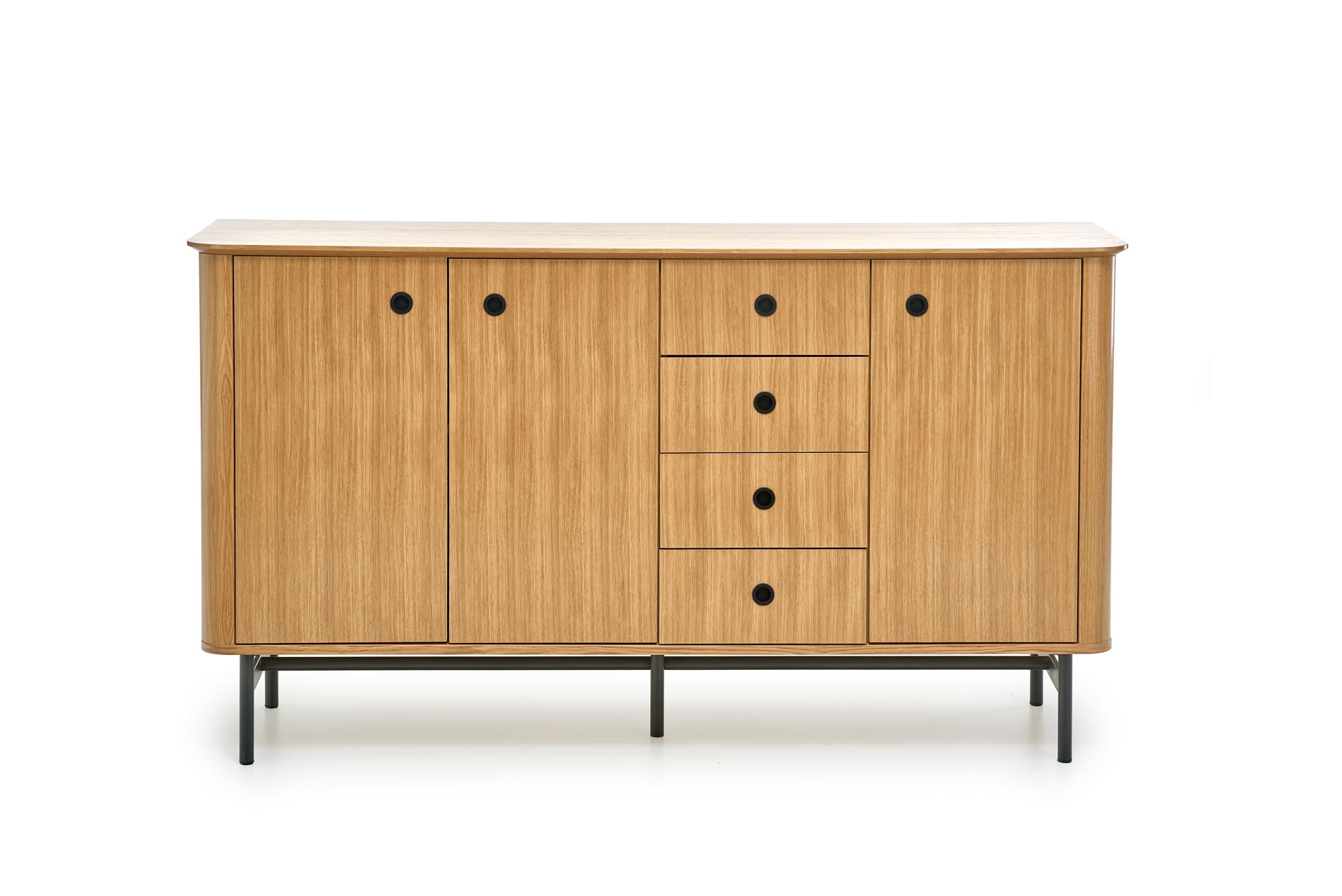komoda, wymiary: 167/44/93 cm, materiał: MDF + okleina naturalna – dębowa / płyta meblowa + okleina naturalna – dębowa / stal malowana proszkowo, kolor: dąb naturalny – czarny