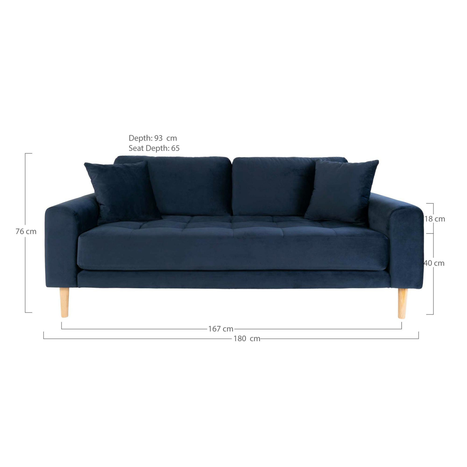 Sofa Lido 2,5 granatowa/ nogi naturalne