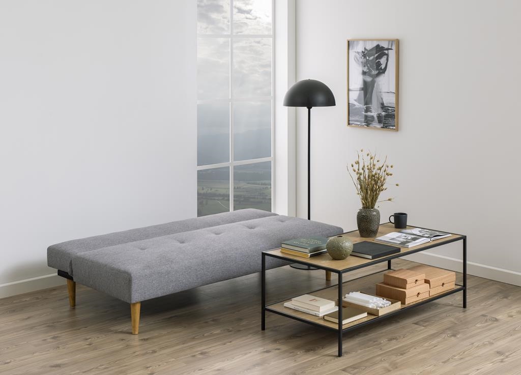 Sofa Lucca to idealne dopełnienie nowoczesnego, minimalistycznego salonu. Ten nieduży mebel jest jednocześnie bardzo praktyczny. Ma możliwość pełnego rozłożenia, dzięki czemu z powodzeniem może służyć jako dodatkowe miejsce do spania. Powierzchnia spania 100x180cm ozwoli wygodnie wypocząć niespodziewanym gościom. Jego nóżki wykonane są z lakierowanego drewna kauczukowca w kolorz dębu, zaś wypełnienie stanowią elastyczne sprężyny i gęsta pianka poliuretanowa. Wysokie na 20cm nóżki sofy sprawdzą się w mieszkaniach w których odkurzaniem zajmuje się jeżdzący nieduży odkurzacz. Nóżki sofy dodatkowo wkończone zostały filcowymi podkładkami, które zabezpieczą podłogę przed ewentualnym porysowaniem podczas przesuwania sofy. Siedzisko i oparcie tapicerowane są tkaniną o neutralnym, szarym kolorze – Malmo fabric light grey 90. Sofa nie posiada podłokietników, ma za to dwie dodatkowe, wygodne poduszki. Ilość kartonów: 1 Wymiary kartonów: 182x101x21cm Waga kartonów: 30,1kg