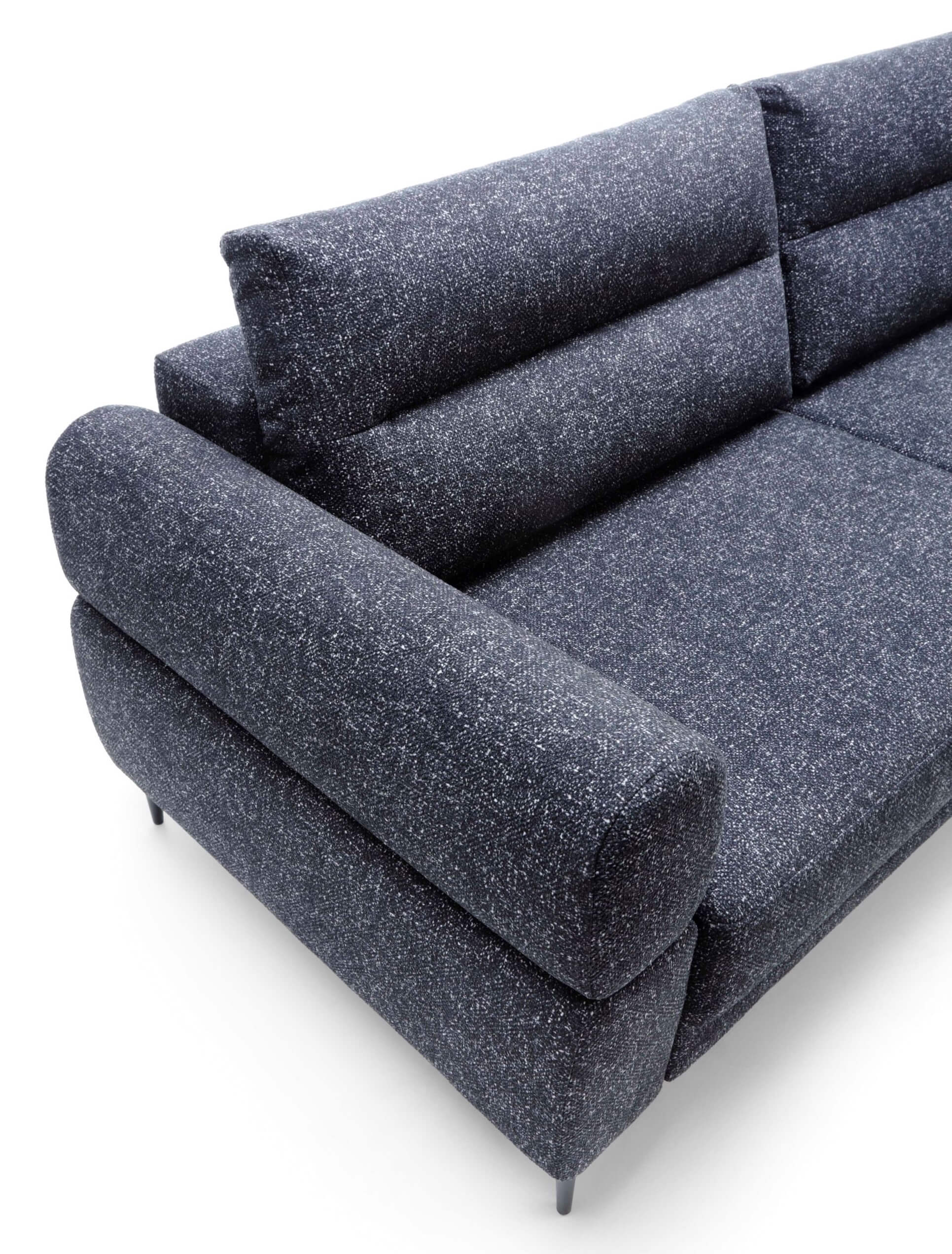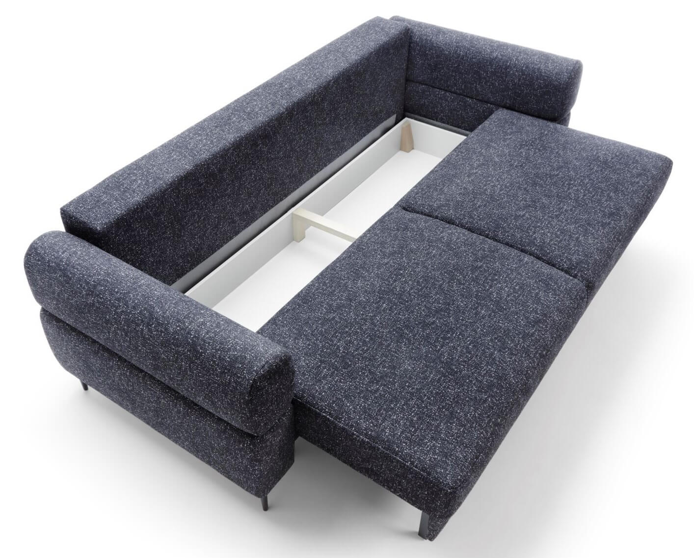 Model ten został wyposażony w funkcję spania, co czyni go nie tylko eleganckim meblem do codziennego użytku, ale także praktycznym miejscem do spania. Dodatkowo duży pojemnik na pościel zapewnia wygodne i praktyczne miejsce do przechowywania, co jest szczególnie korzystne w przypadku ograniczonej przestrzeni.