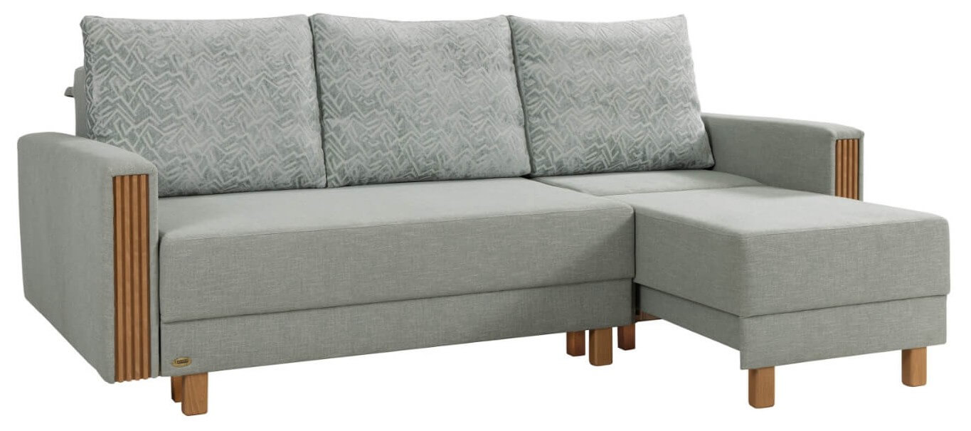 Sofo-narożnik, to funkcjonalny mebel który w prosty sposób może być narożnikiem i sofą dzięki składanej otomanie. Powierzchnia spania o wymiarach 200×147 cm. świetnie nada się do przestrzeni salonowej gdzie okazjonalnie potrzebna jest funkcja spania. Pojemnik na pościel to dodatkowy atut tego klasycznego mebla.