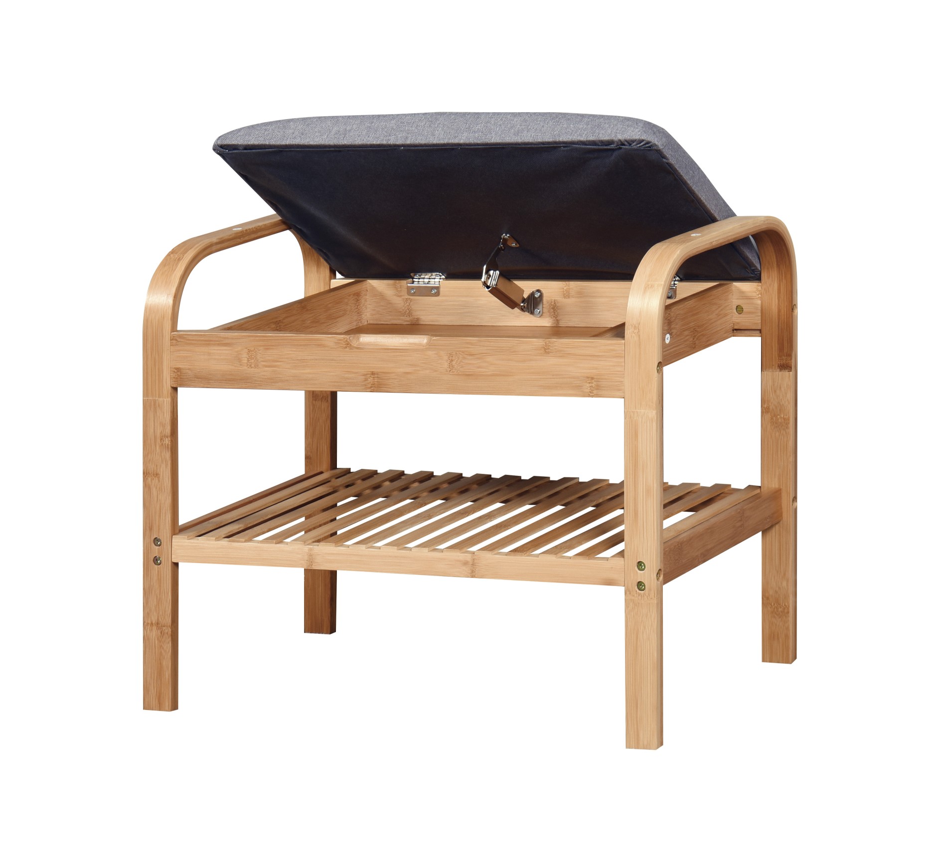 wymiary: 60/33/50 cm, materiał: drewno lite – bambusowe / tkanina, kolor: naturalny / popielaty