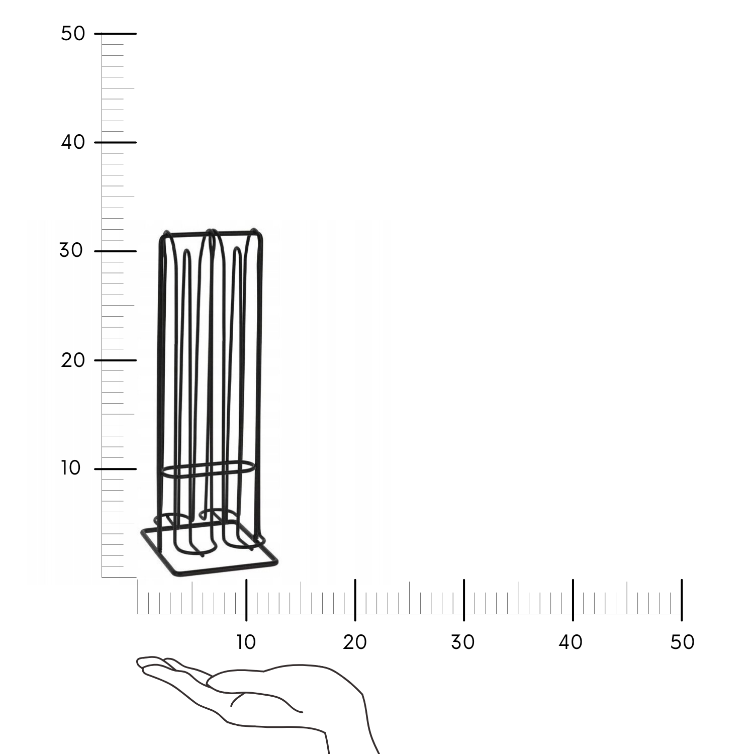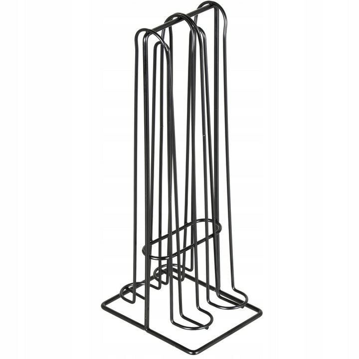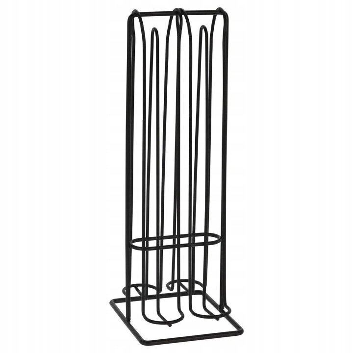 Stojak na kapsułki do kawy wykonany z metalowego drutu, pokryty czarną matową powłoką, to eleganckie i praktyczne rozwiązanie do przechowywania kapsułek. Jego wymiary wynoszą 12x10x29 cm, a waga to 365 gramów, co czyni go lekkim, ale jednocześnie stabilnym. Stojak jest zaprojektowany tak, aby pomieścić do 32 kapsułek modelu Nespresso lub innych o tym samym wymiarze, umożliwiając łatwy dostęp do ulubionych smaków i utrzymanie porządku.