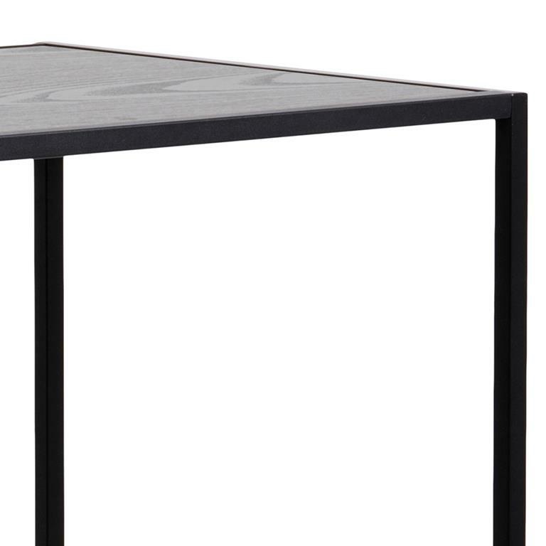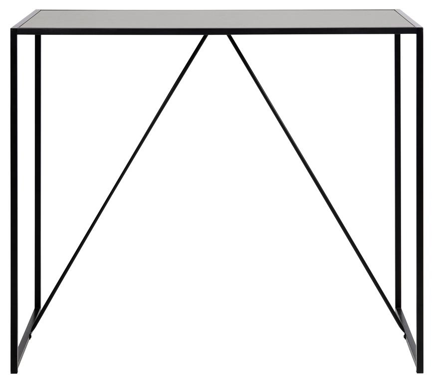 Stół barowy Seaford sprawdzi się świetnie w minimalistycznych wnętrzach. Szkielet mebla został wykonany z malowanego proszkowo metalu, zaś blat to płyta w czarnej okleinie. Pod blatem znajdują się dwa ułożone pod kątem elementy, które oprócz roli dekoracyjnej dodatkowo stabilizują podstawę. Stół nada się do kuchni bądź jadalni, a także do przestrzeni publicznych takich jak bary czy restauracje. Ilość kartonów: 1 Wymiary kartonów: 121×62,5×7,5cm Waga kartonów: 14,2kg