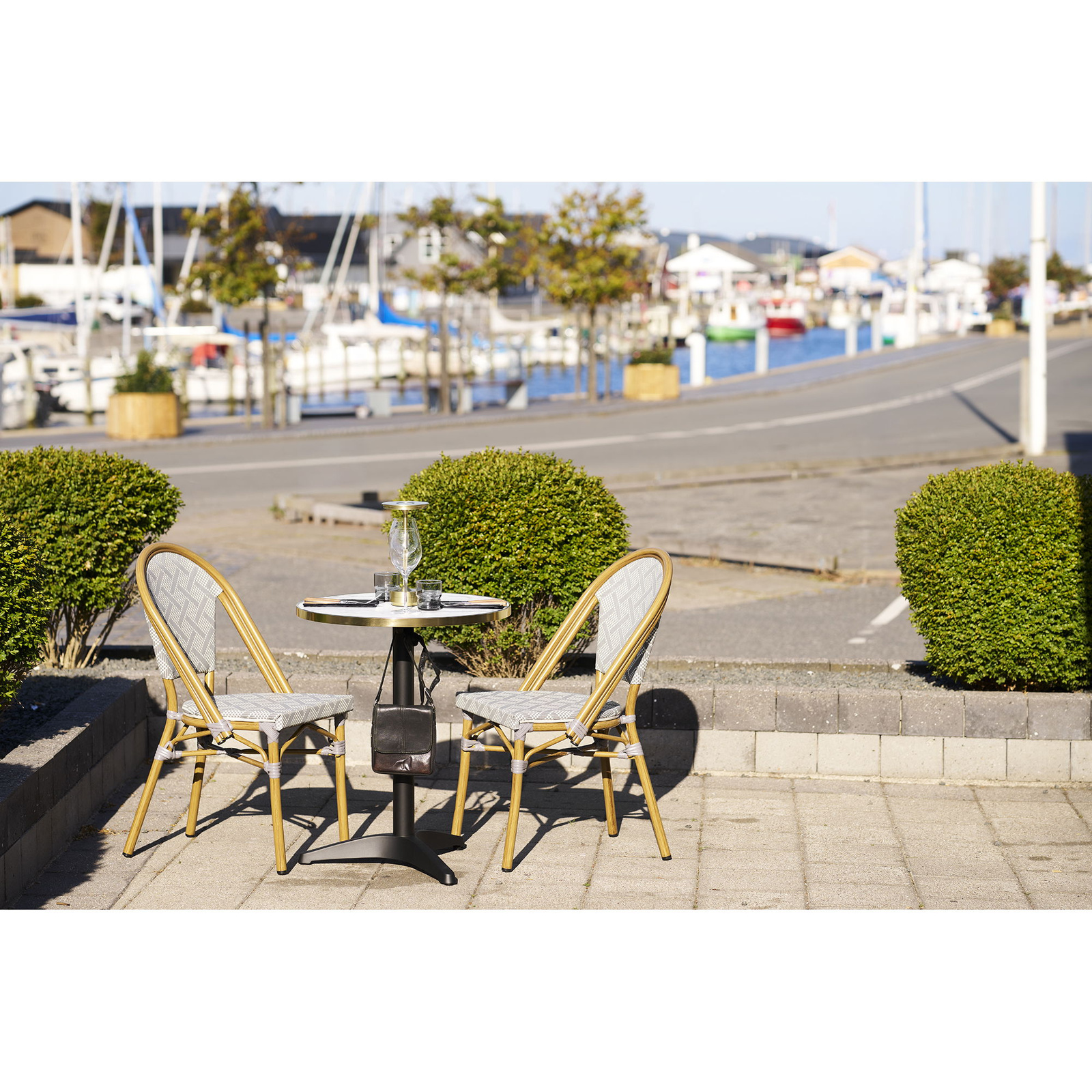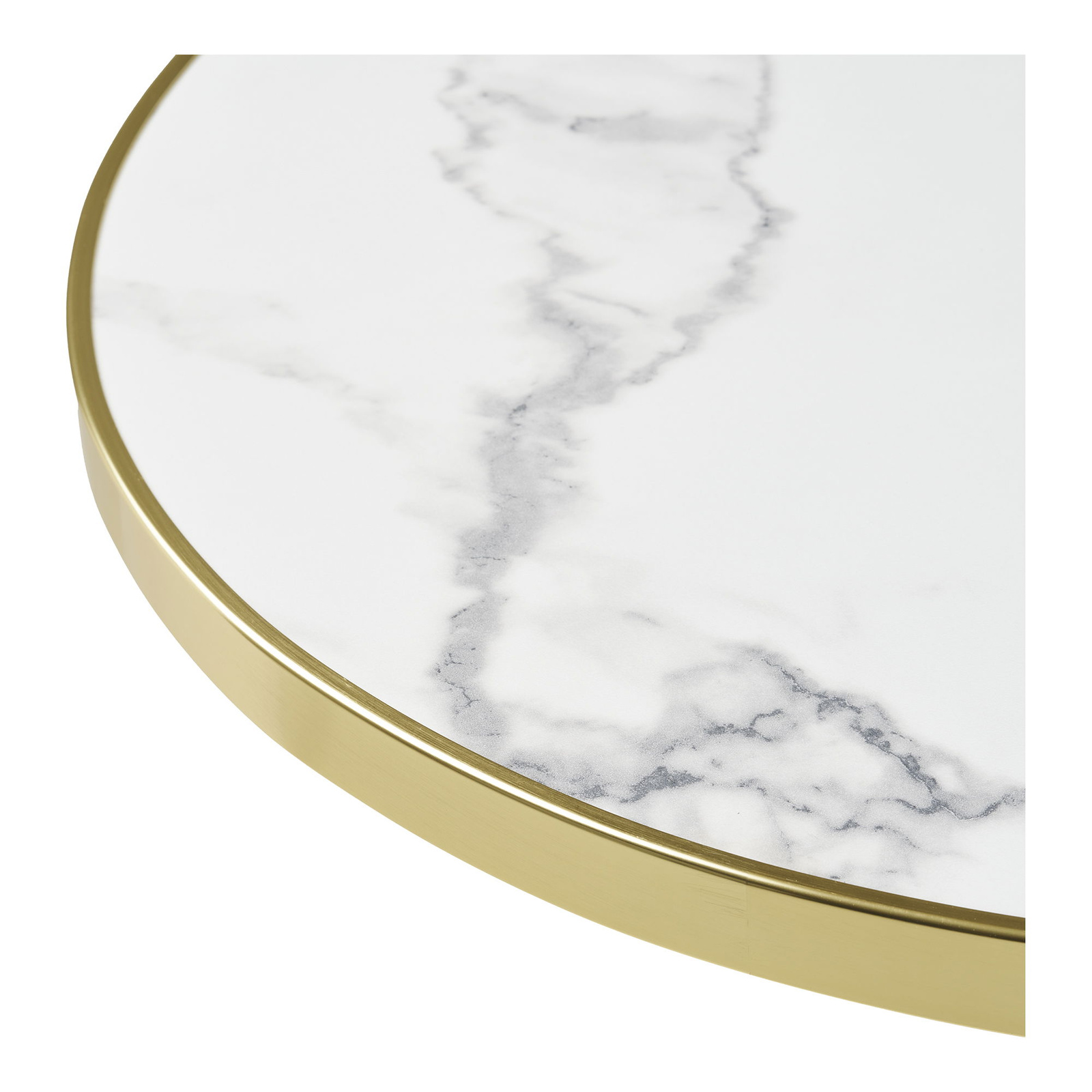 Stół bistro, imitacja marmuru, biały ze złotą krawędzią, czarne nogi, aluminium, ?60×73 cm, Aluminium