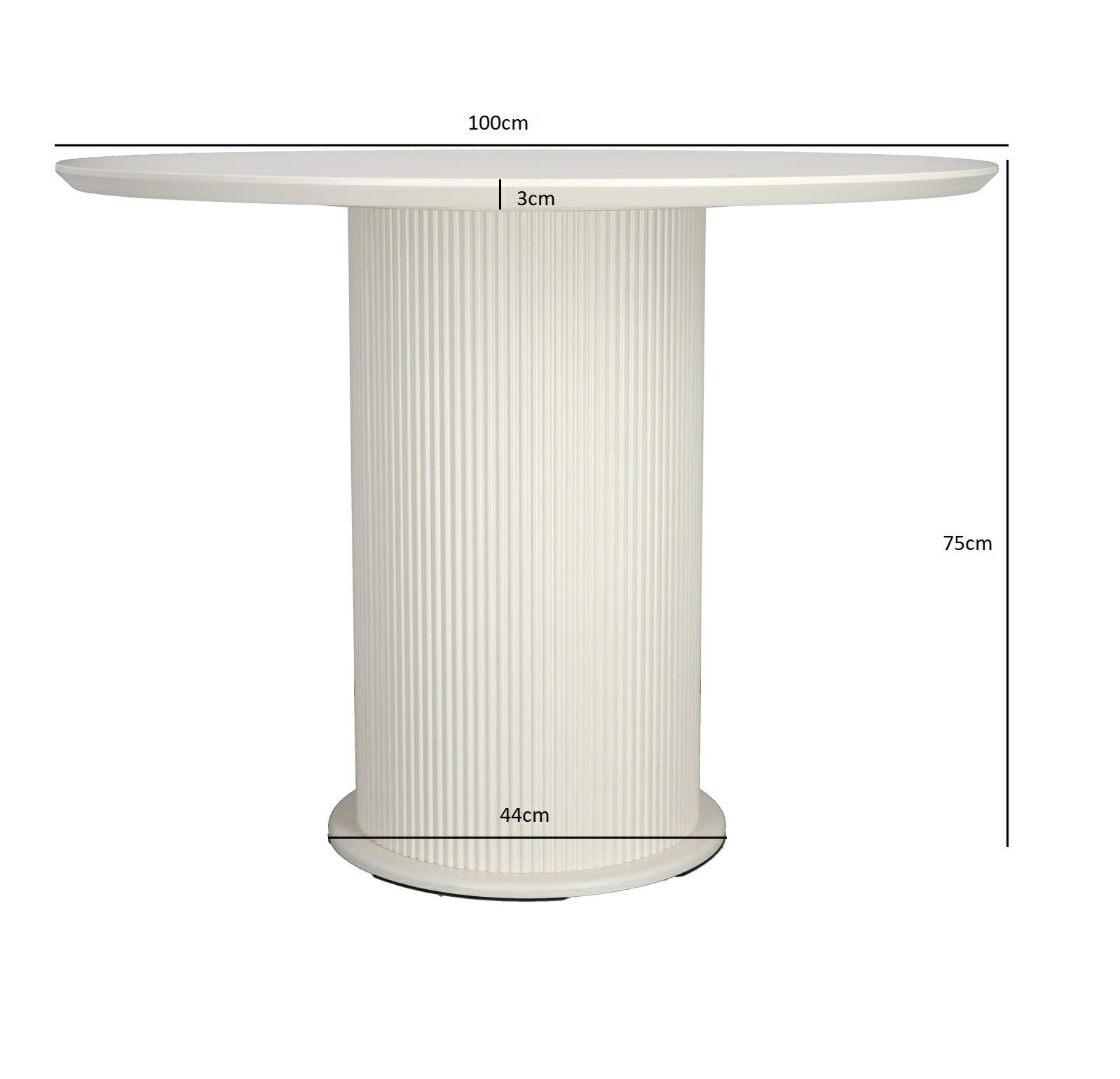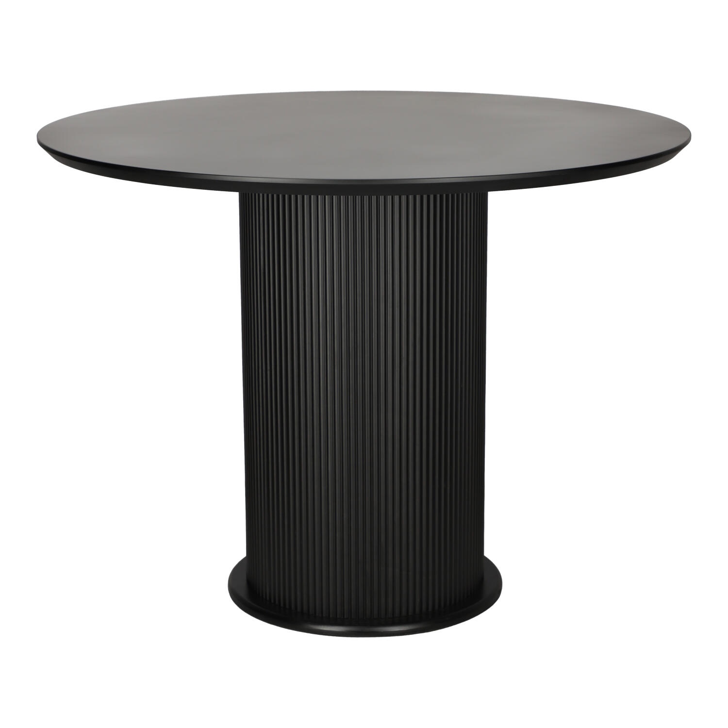 Okrągły czarny stół z pojedynczą nogą ozdobioną lamelami sprawdzi się nie tylko we wnętrzu boho, czy skandynawskim, ale również w nowoczesnej jasne przestrzeni. Stół o średnicy 100 cm wykonany został z połączenia melaminy oraz płyty MDF. Melamina użyta na blacie stołu jest bardzo trwała, trudno palna i przede wszystkim odporna na działanie wody, wysokich temperatur i światła. Podstawa natomiast to frezowana płyta MDF. Cały mebel został polakierowany na czarno, co sprawia, że jest on delikatni i z pewnością nie przytłoczy wnętrza. Pakowany w 2 kartony (108x108x8cm i 52x52x78cm)