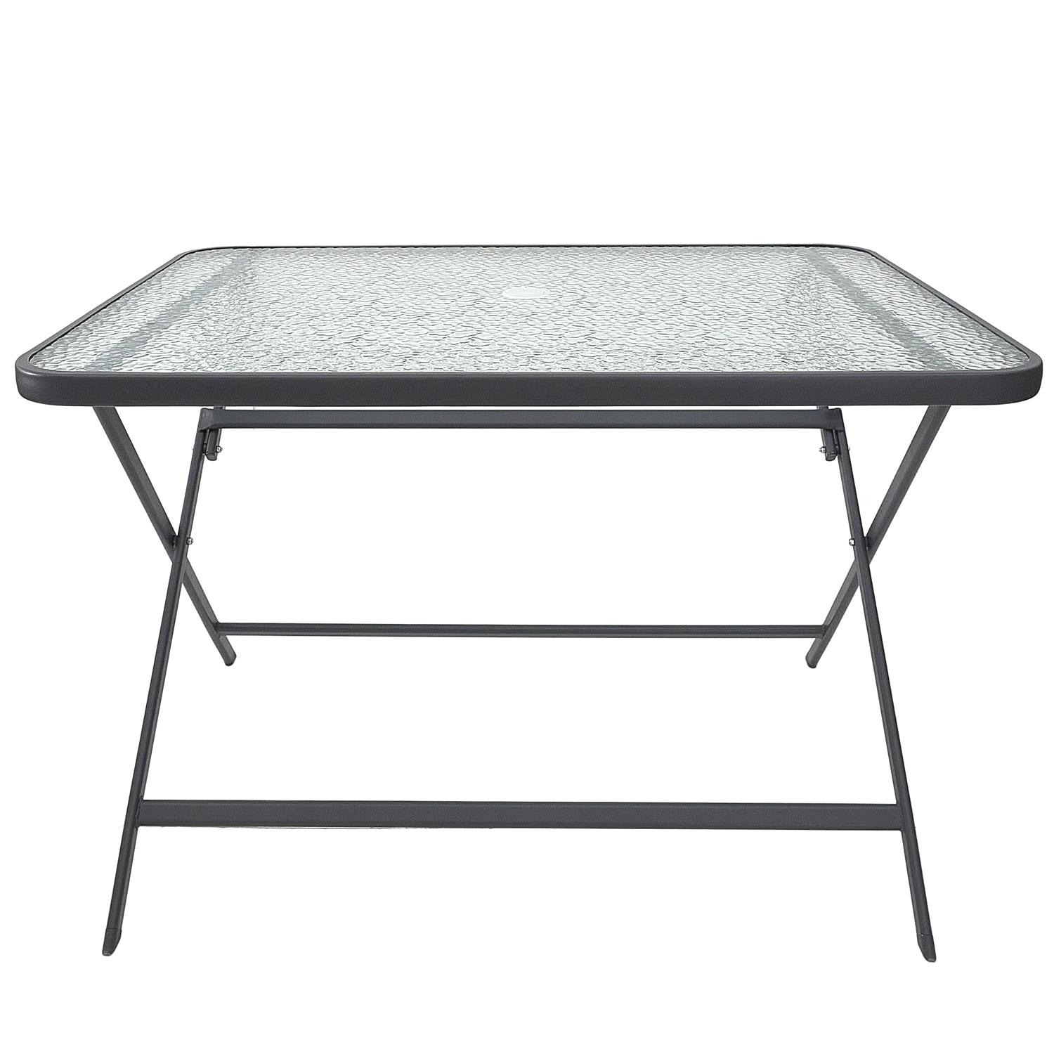 Składany stół Formentera z hartowanym, szklanym blatem to idealny mebel na taras. Prostokątny stół ogrodowy bez problemu pomieści sześć osób podczas wspólnego biesiadowania na dworze. DŁUGOŚĆ PRODUKTU (CM) 110 WYSOKOŚĆ PRODUKTU (CM) 70 GŁĘBOKOŚĆ PRODUKTU (CM) 75 WAGA PRODUKTU (KG) 14,6 Materiał: szkło, PP, metal (stal) Do użytku zewnętrznego. Wymaga montażu Max. obciążenie 50kg
