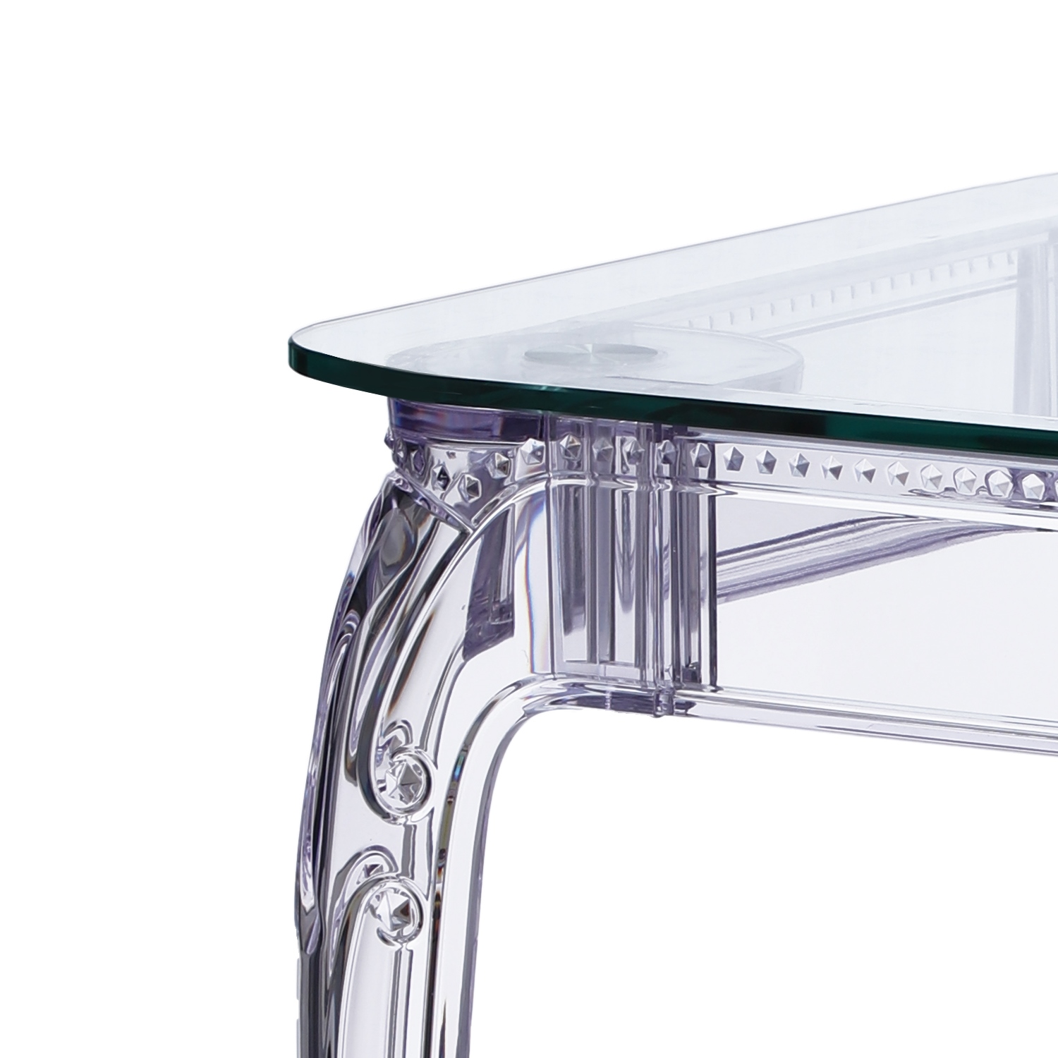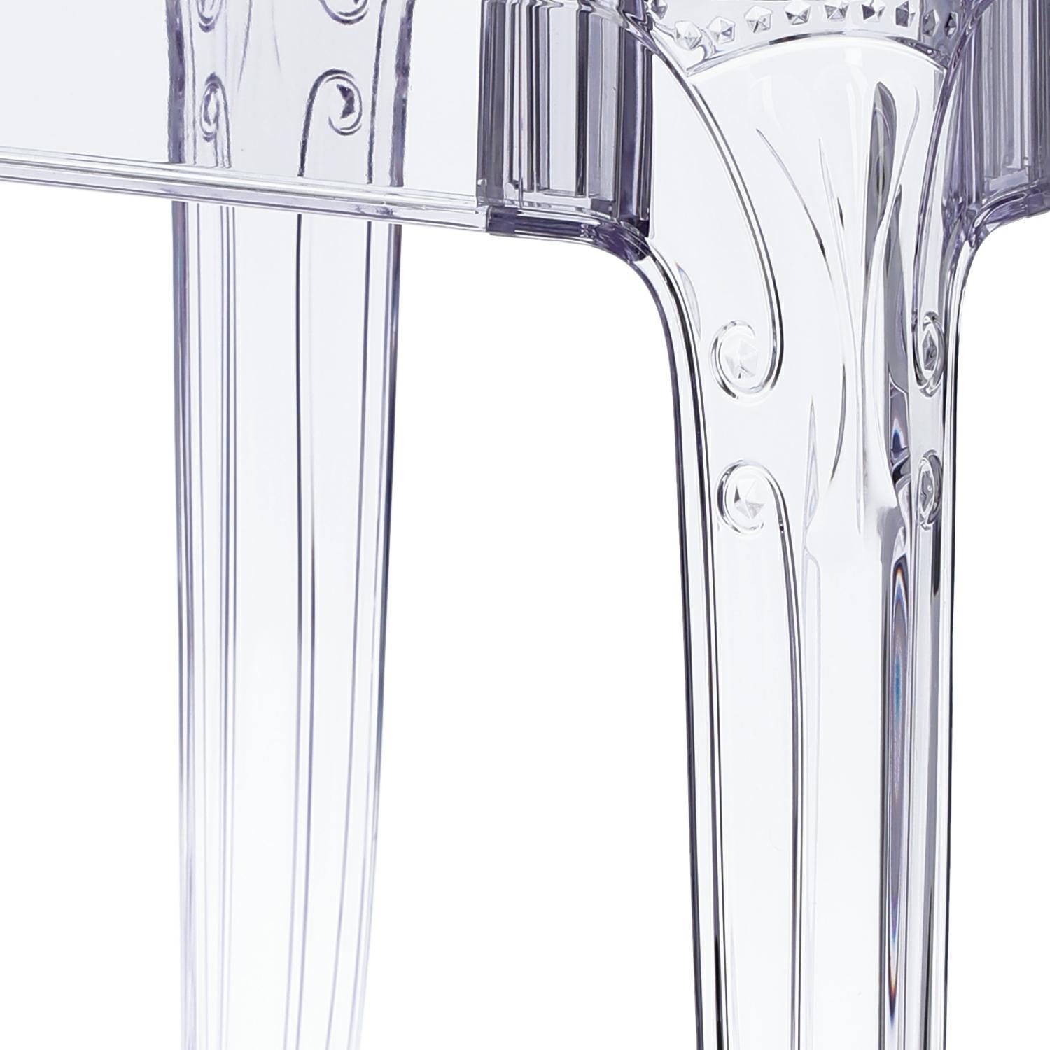 Stół Ghost to połacznie klasycznej wręcz barokowej formy oraz nowoczesnej techniki, oraz wytrzymałych materiałów. Stół Ghost posiada szklany blat o grubości 10 mm, który podpierają bogato zdobione poliwęglanowe nogi. Poliwęglan to bardzo wytrzymałe tworzywo o szerokim zastosowaniu. Dzięki temu, że nogi stołu zostały zrobione ze sztucznego tworzywa, są one odporne na uszkodzenia mechaniczne czy zadrapania i wilgoć. Ghost to doskonały stół do małej jadalni, kuchni lub salonu. Przezroczysta forma mebla sprawia, iż nie przytłacza on pomieszczenia, a wręcz odbija światło i wnętrze wydaje się większe. Stół dostępny jest w dwóch rozmiarach. Grubość blatu: 10 mm Grubość nóg: od 5 do 8,5 cm Wymiary kartonu: 9,5 x 84,5 x 123 cm