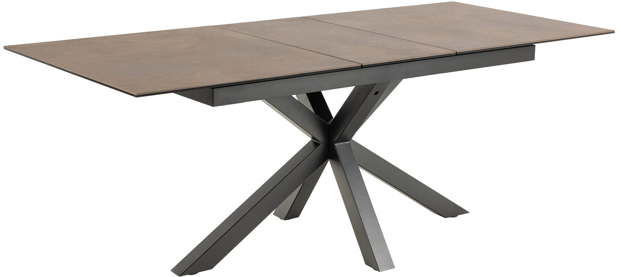 Stół Heaven nie został stworzony tylko po to, by służyć swojemu głównemu celowi. Jego zadaniem jest także ozdobienie wnętrza. Został zaprojektowany z ceramicznym blatem, który jest odporny na ciepło i zarysowania, a dodatkowo świetnie łączy się z geometryczną stalową podstawą. Blat, przy którym może komfortowo pomieścić się do 8 osób można dodatkowo poszerzyć, by stworzyć miejsce dla dwóch kolejnych osób. Kluczowe cechy: Nowoczesny i praktyczny stół do jadalni Brązowy blat ceramiczny odporny na wysoką temperaturę i zarysowania Rozkładane skrzydło z brązowej ceramiki Metalowa podstawa malowana proszkowo na czarno Wygodne miejsce dla 8/10 osób bez/ze skrzydłem przedłużającym Ilość kartonów: 2 Wymiary kartonów: 176x98x12,5cm 94,5×69,5×7,8cm Waga kartonów: 80,3kg 17,2kg