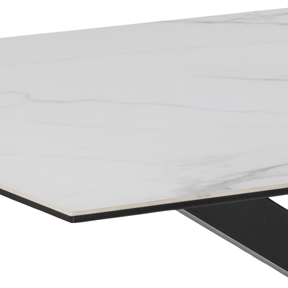 Duży stół Heaven będzie ozdobą Twojego domu oraz miejscem spotkań rodzinnych. Dzięki swojemu unikalnemu charakterowi, mebel wspaniale zaprezentuje się w każdej nowoczesnej jadalni czy kuchni. Idealnie sprawdzi się w aranżacjach industrialnych, loftowych, ale również w bardziej klasycznych wnętrzach, w których będzie stanowić wyjątkowy dodatek.Industrialny stół o pięknym ceramiczno-szklanym blacie oraz metalowej pomalowanej na czarno podstawie pozwoli na biesiadowanie w dużym gronie rodzinnym. Konstrukcja opiera się na metalowym stelażu o geometrycznej formie i zwieńczona jest blatem z białej ceramiki i szkła. Ze względu na swój duży rozmiar, stół pomieści komfortowo nawet 8 osób. Waga stołu: 57 kg Wymiary opakowania: 166x96x6 cm i 86x79x7 cm