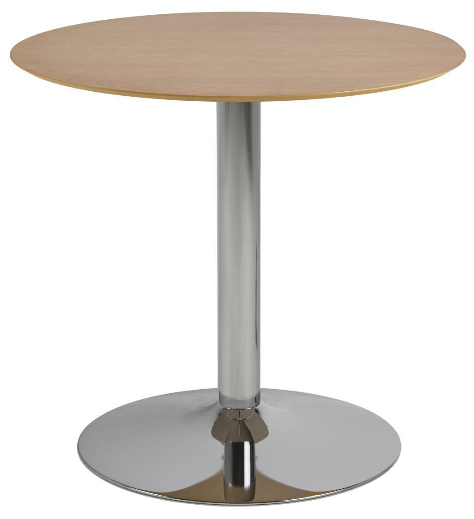 Okrągły stolik kawowy Ibiza, blat z matowego dębu, fornir lakierowany NC, podstawa w kształcie trąbki, stal chromowana, ?80 x 74 cm