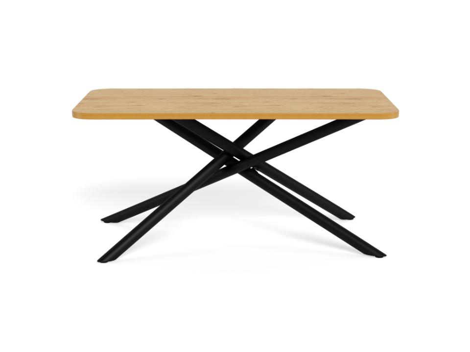 Prostokątny stół jadalny Levanto, blat matowy, dąb dziki, surowa melamina, 4-ramienna podstawa, matowa, czarna, surowa stal malowana proszkowo, 160 x 90 x 75 cm