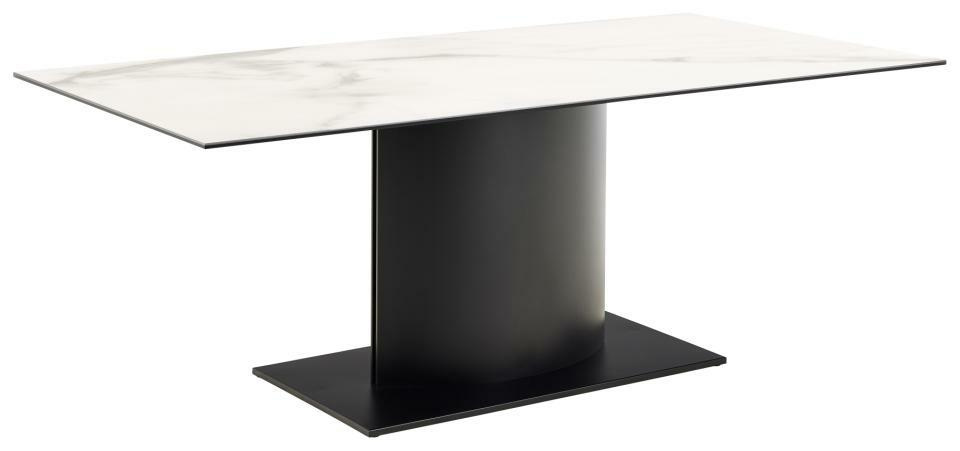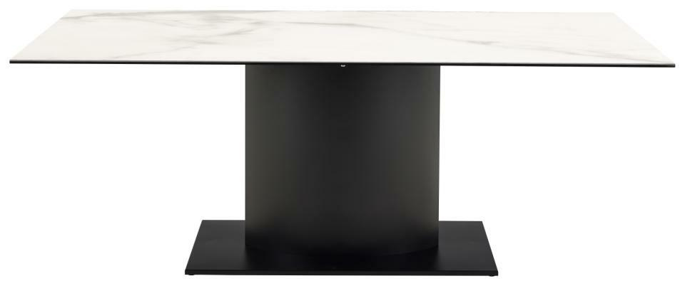 Stół jadalny Marbella, blat z białej ceramiki Akranes, podstawa w kształcie krążka, czarna, matowa, malowana proszkowo, 200 x 100 x 75,5 cm