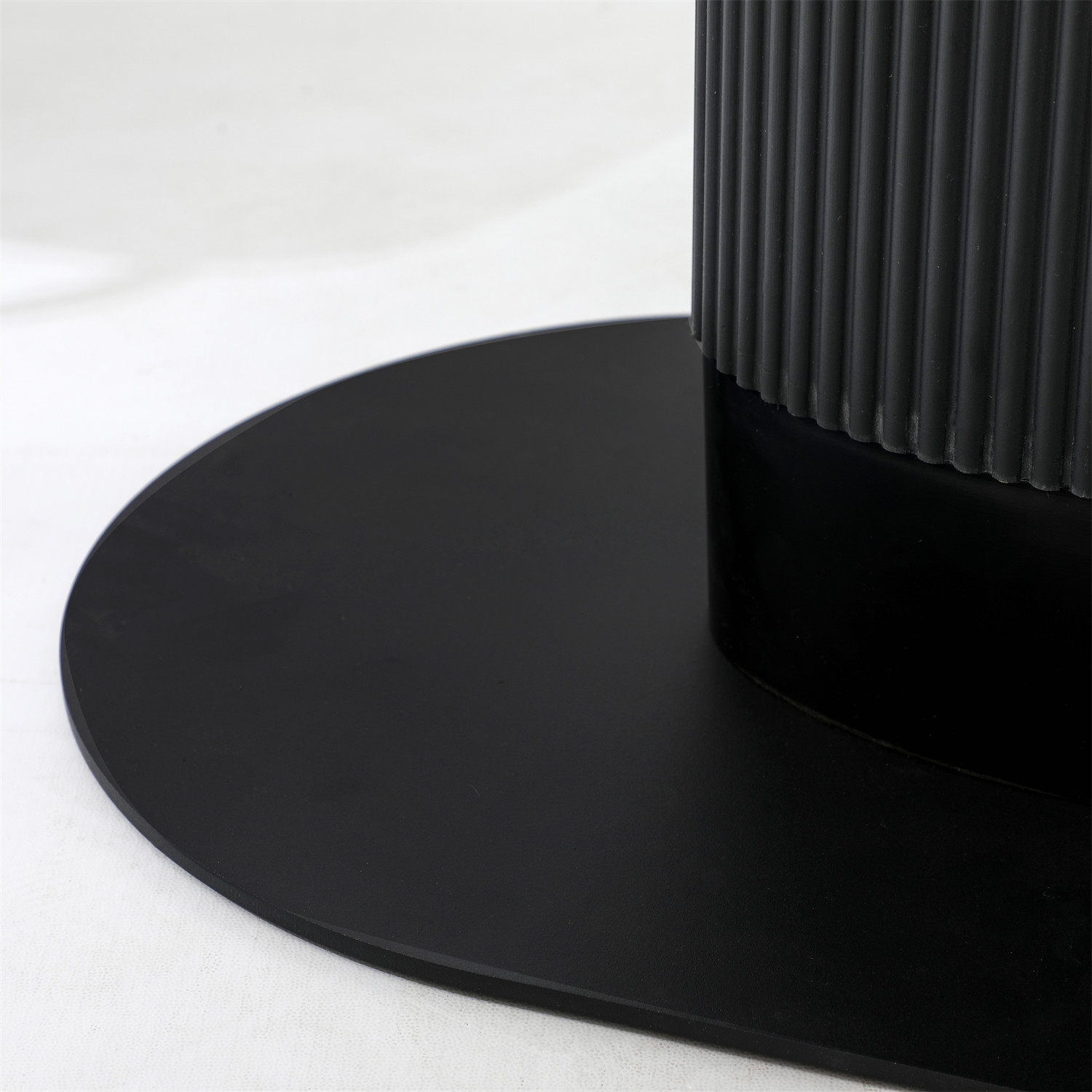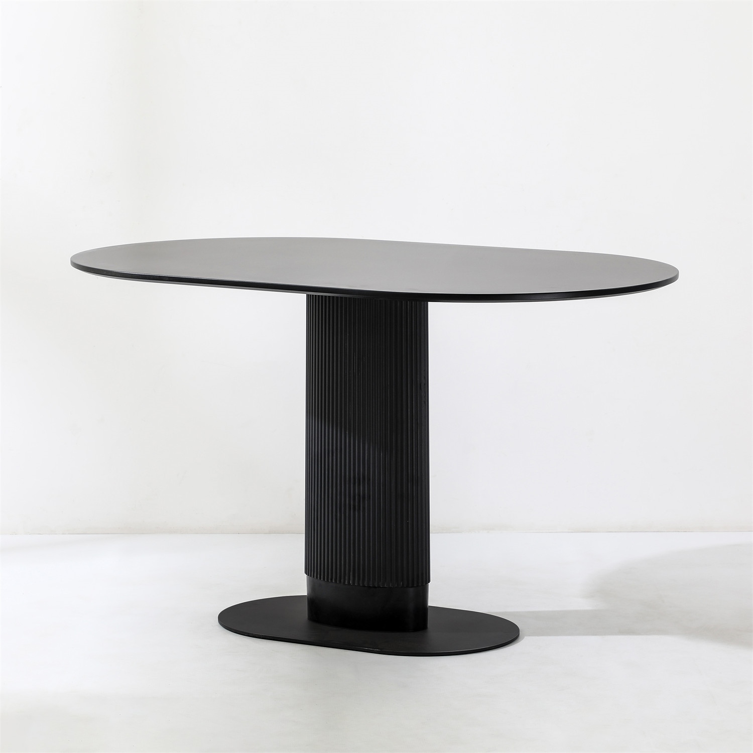 Stół Maxim to nowoczesny projekt o ponadczasowym wyglądzie. Owalny blat o szerokości 120cm i głębokości 70cm jest idealną powierzchnią dla 5-6 osób. Stół na jednej nodze wykonany został z płyty MDF oraz metalowej podstawy. Noga stołu wykonana z metalu ozdobiona została pionowymi lamelami z tworzywa sztucznego, które dodają jej nowoczesnego wyglądu. Płaska podstawa stołu to metal malowany proszkowo na czarno. Blat stołu wykonany z wytrzymałej płyty MDF zachwyca swoim wyglądem, dzięki delikatnemu podcięciu, które dodaje mu lekkości. Stół występuje w dwóch wersjach kolorystycznych. Wymaga montażu Waga stołu: 25,6 kg