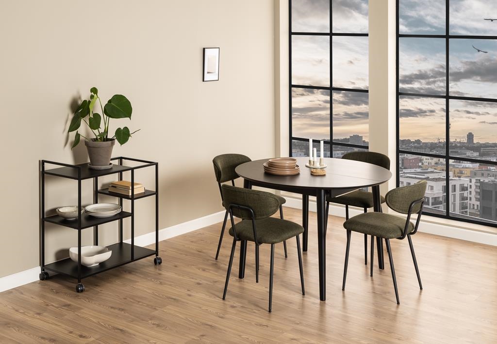 Poznaj Montreux, stół do jadalni, który wygląda świetnie i może pomieścić całą rodzinę. Okrągły kształt, miękkie krawędzie i fornir z czarnego dębu sprawiają, że jest to mebel, który będzie pasował do wielu różnorodnych wnętrz. Dzięki rozsuwanemu blatowi powierzchnię stołu można z łatwością przedłużyć. Jest to prosty mechanizm, który nie wymaga wiele czasu i wysiłku. Główne cechy : Nowoczesny stół z rozkładanym blatem Blat z forniru dębowego lakierowanego na czarno Podstawa z drewna kauczukowego lakierowanego na czarno Schowek na rozkładane skrzydło pod blatem Wygodne miejsce dla 4/6 osób bez/ze skrzydłem przedłużającym Duński design chroniony wyłącznie dla Actona Ilość kartonów: 1 Wymiary kartonów: 122,5×118,7x13cm Waga kartonów: 37,4kg Wymiry blatu złożonego: 115x115cm Wymiary blatu rozłożonego: 115x154cm