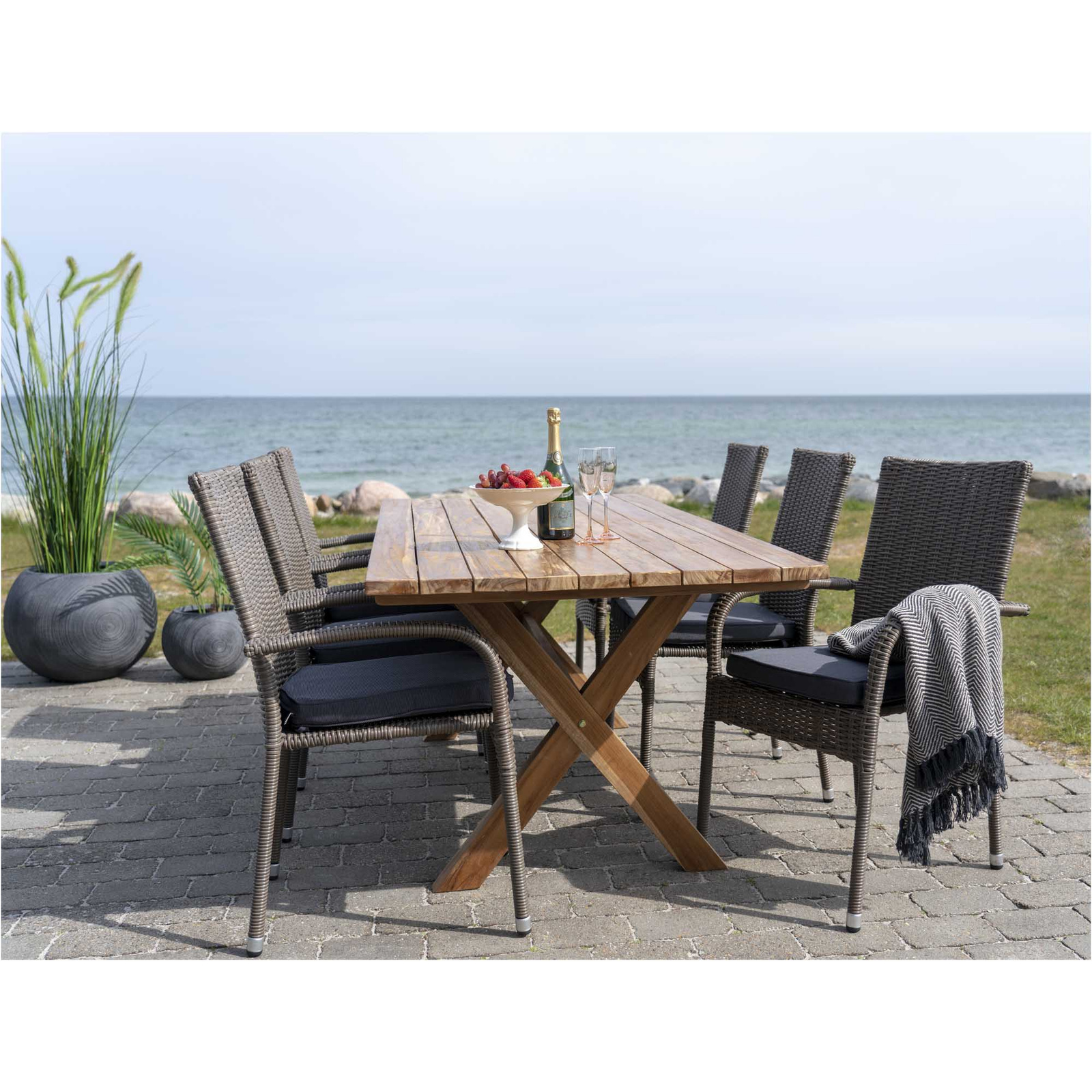 Drewniany stół w stylu Farm House doda wiejskiego, sielankowego wyglądu każdej jadalni. Stół o podstawie drewnianej wykonanej ze skrzyżowanych beli drewna jest nie tylko efelktowny ale przede wszystkim niezwykle wytrzymały. Olejowane, naturalne deski z drewna tekowego sa nie tylko efektowne ale również jedyne w swoim rodzaju. Drewno tekowe wykorzystane w tym stole pochodzi z recyklingu. Ze względu iż jest to naturalny materiał jego odcień oraz usłojenie drewna może nieznacznie różnić się od drewna przedstawionego na zdjęciach.