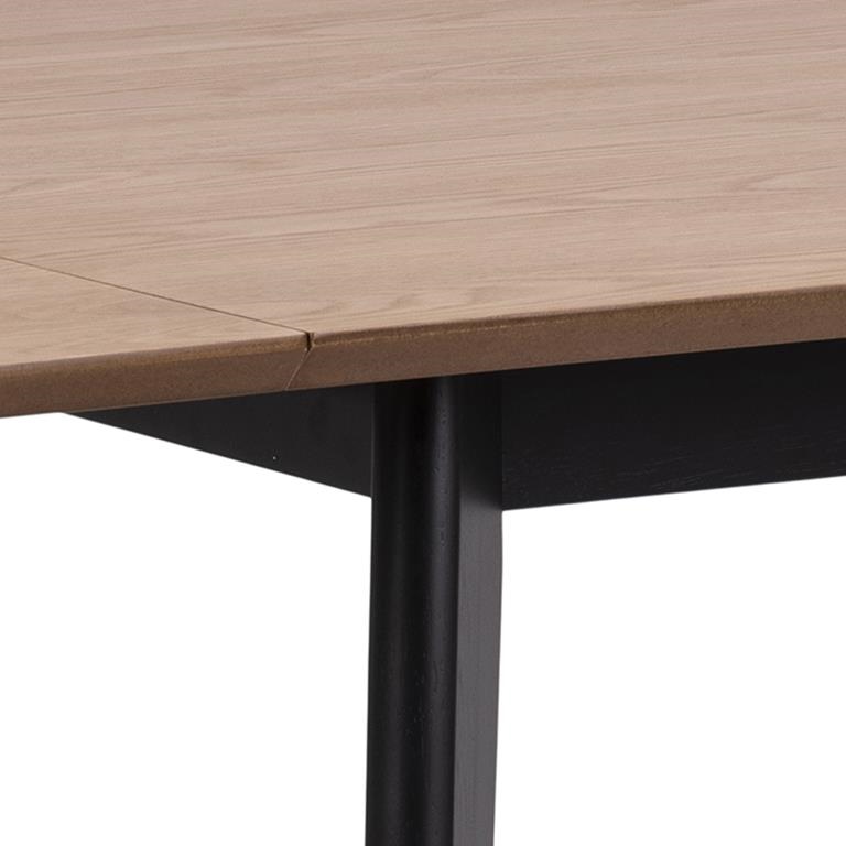 Stół Roxby to nowoczesny i funkcjonalny projekt, który sprawdzi się nawet w niewielkich pomieszczeniach. Część jego blatu składa się na bok – w razie potrzeby może funkcjonować jako jego przedłużenie. Został wykonany z dębowego forniru w kolorze naturalnym, zaś podstawa składająca się z czterech smukłych nóg to drewno kauczukowca. Stół idealnie nada się do salonu bądź jadalni w nowoczesnym stylu. Ilość kartonów: 1 Wymiary kartonów: 93×87,5×14,5cm Waga kartonów: 22kg