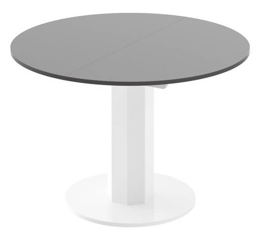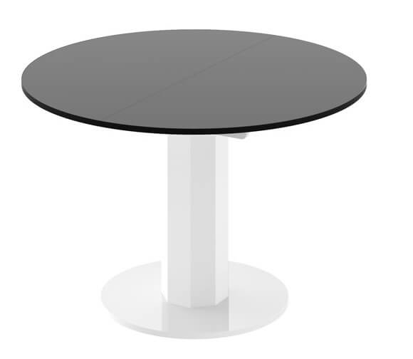 Stół SOLO LUX jest także stołem bardzo praktycznym. Posiada funkcję rozkładania od 100 cm do 144 cm (jedna wkładka powiększająca chowana jest pod blatem stołu). Po rozłożeniu stół przybiera kształt elipsy. Konstrukcja stołu, pozwala na swobodne i komfortowe usytuowanie większej liczby użytkowników niż w przypadku klasycznego stołu na 4 nogach.