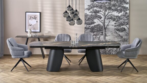 blat: cermika, efekt marmuru stelaż: metal, kolor: biały / czarny mat