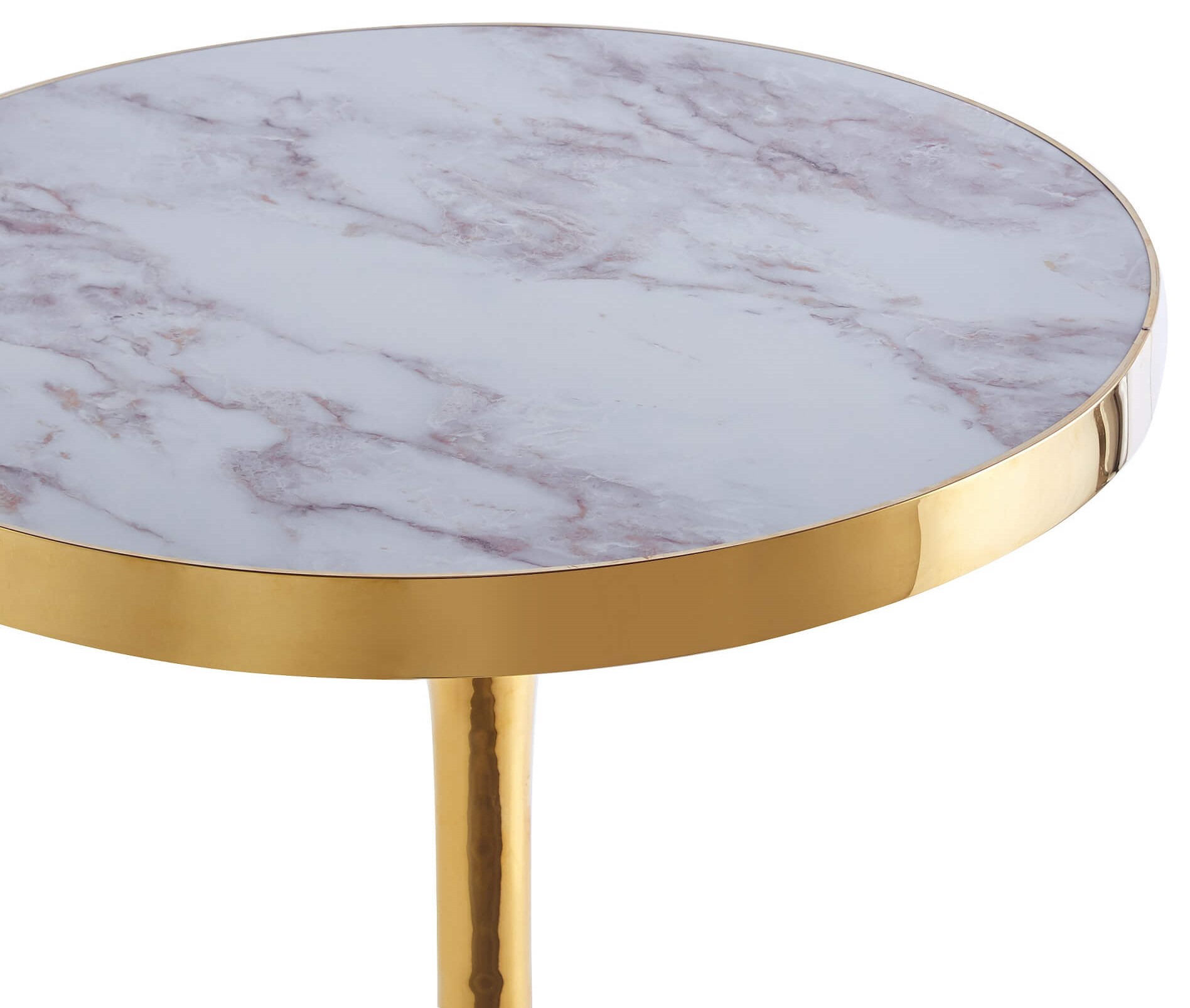 Stół okrągły ; blat akryl wykończony jak EFEKT MARMURU BIAŁY; noga metal chrom złoty