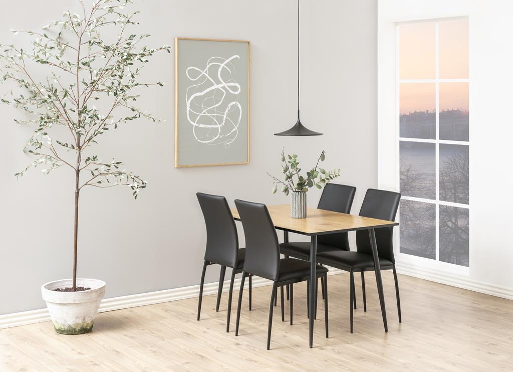 Stół Wilma to połączenie blatu w kolorze dzikiego dębu z metalową podstawą. Drewniany blat w okleinie imitującej dąb doskonale współgra z metalową, matową, malowaną proszkowo na kolor czarny podstawą. Boki blatu dla kontrastu zostały oklejone okleiną w kolorze i strukturze czarnego dębu. Stół sprawdzi się doskonale w każdym wnętrzu. Nadaje się do przestrzeni hotelowych, gastronomicznych oraz domowej jadalni czy salonu. Waga stołu: 19,5 kg Maksymalna ilość szt. w kartonie: 1