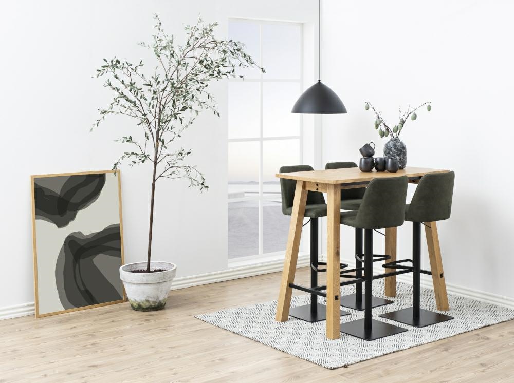 Stołek barowy Avanja to propozycja do modnych i wysokich wysp kuchennych lub barów. Hoker został zrobiony z tapicerowanego siedziska oraz metalowej podstawy. Materiał użyty na siedzisku to Preston fabric olive zielony 38. Jest to wytrzymała tkanina w stonowanym uniwersalnym kolorze. Siedzisko zostało zrobione również z wyprofilowanego oparcia. Metalowa podstawa stolika została pomalowana proszkowo na czarno. Podstawa składa się z jednej nogi. Dużym plusem jest regulacja wysokości podstawy za pomocą uchwytu pod siedziskiem. Kolejnym plusem stołka jest podnóżek, dzięki któremu łatwo możemy usiąść na stołku oraz wygodnie możemy oprzeć nogi. Waga: 14 kg. Wymiary kartonu: 39,5cm x 51cm x 48,5cm Wysokość siedziska: 52 cm Szerokość siedziska: 78,5 cm Głębokość siedziska: 43 cm Wysokość podłokietników: 30 cm