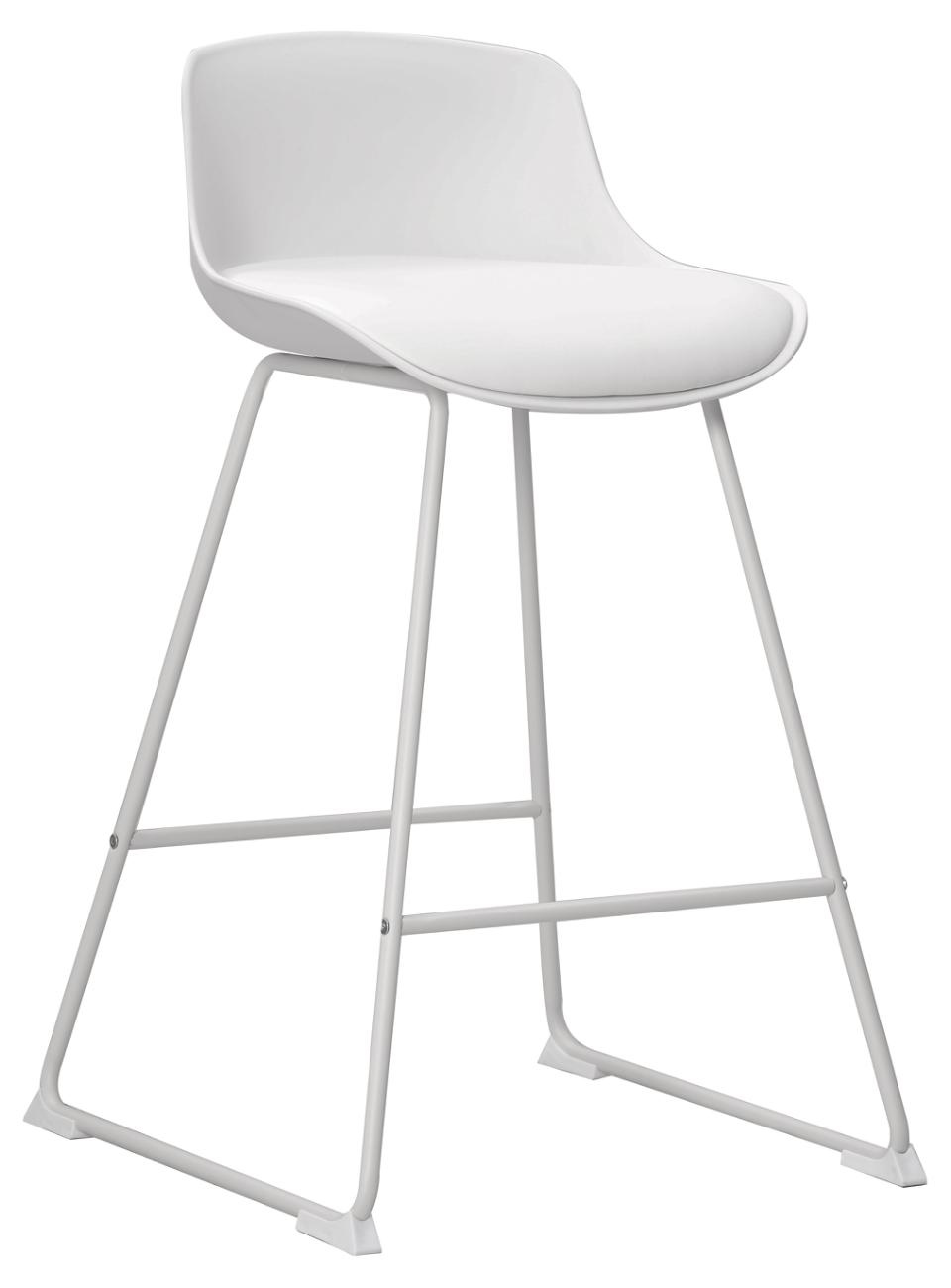 Bardzo wygodny stołek barowy Tina. Stołek w nowoczesnym stylu utrzymany jest w przygaszonej kolorystyce. Wykonana z metalu malowanego proszkowo na kolor biały podstawa idealnie współgra z siedziskiem. Siedzisko z polipropylenu wraz z oparciem są wymodelowane jako jeden element. Uzupełnieniem jest poduszka obszyta eko skórą. Świetny wybór do nowoczesnego baru lub minimalistycznej w kuchni jako siedzisko przy wyspie. Maksymalne obciążenie: 120 kg Waga stołka 7,5 kg Maksymalna ilość sztuk w kartonie: 2 Wymiary kartonu:80x25x51cm Waga kartonu: 6,1kg