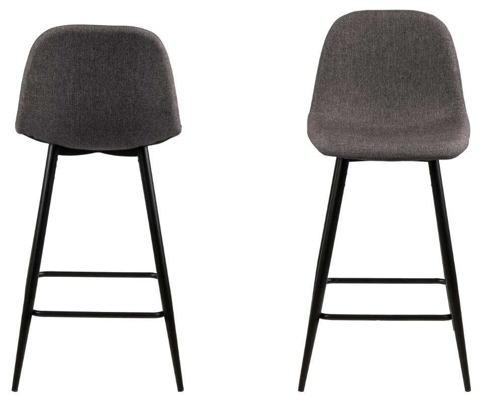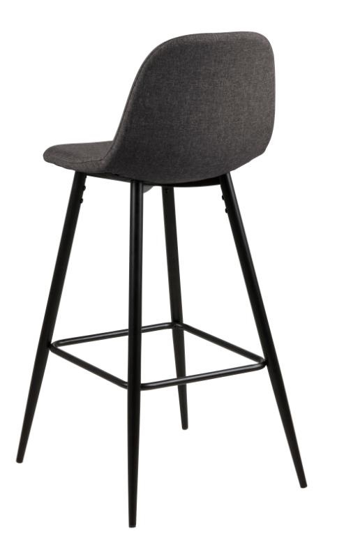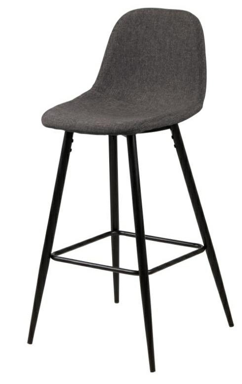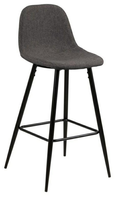 Wilma to zgrabne, bardzo nowoczesny stołek barowy. Charakteryzuje go ciekawa tkanina Preston Anthracite 96, którą został obity. Siedzisko oraz oparcie są lekko wyprofilowane aby zapewnić jak najwygodniejszą pozycję do siedzenia. Podstawą stołka są lakierowane proszkowo metalowe czarne nogi. Waga krzesła to tylko 6 kg Maksymalne obciążenie: 120kg . Wymiary kartonów. Pierwszy: 60cm x 36cm x 47cm. Drugi: 78cm x 14cm x 7cm Wyskokość siedziska: 65 cm Szerokość siedziska: 41 cm Głębokość siedziska: 34 cm