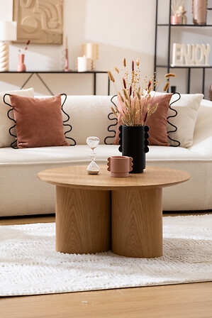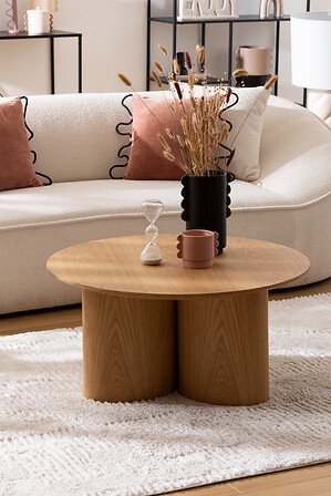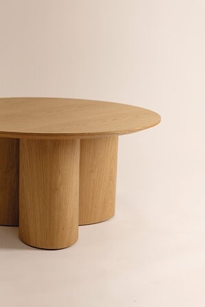 Dodaj przytulnej atmosfery w swoim salonie dzięki stolikowi Aliona. Okrągły blat z delikatnie podciętym rantem jest nie tylko odozobą ale idealnym miejscem na podanie popołudniowej kawy. Trzy sporek średnicy nogi zapewniają mu doskonałą stabilność. Okleina drewniana jest pokryta lakierem nitrocelulozowym, który zapewnia większą odporność na wodę i plamy oraz łatwą konserwację. Wskazówki dotyczące konserwacji Aby dbać o stół, należy go regularnie czyścić miękką, lekko wilgotną ściereczką. Unikaj używania środków ściernych lub agresywnych chemicznie, które mogą uszkodzić drewniane wykończenie. Ślizgacze nóg w zestawie Tak Rodzaj okleiny Okleina drewniana dębowa Rodzaj ślizgaczy Zaślepka z tworzywa sztucznego (przybita) Materiał okleiny Dąb Materiał nóg MDF – Płyta pilśniowa Samodzielny montaż Tak Materiał blatu MDF – Płyta pilśniowa Czas montażu 10 min