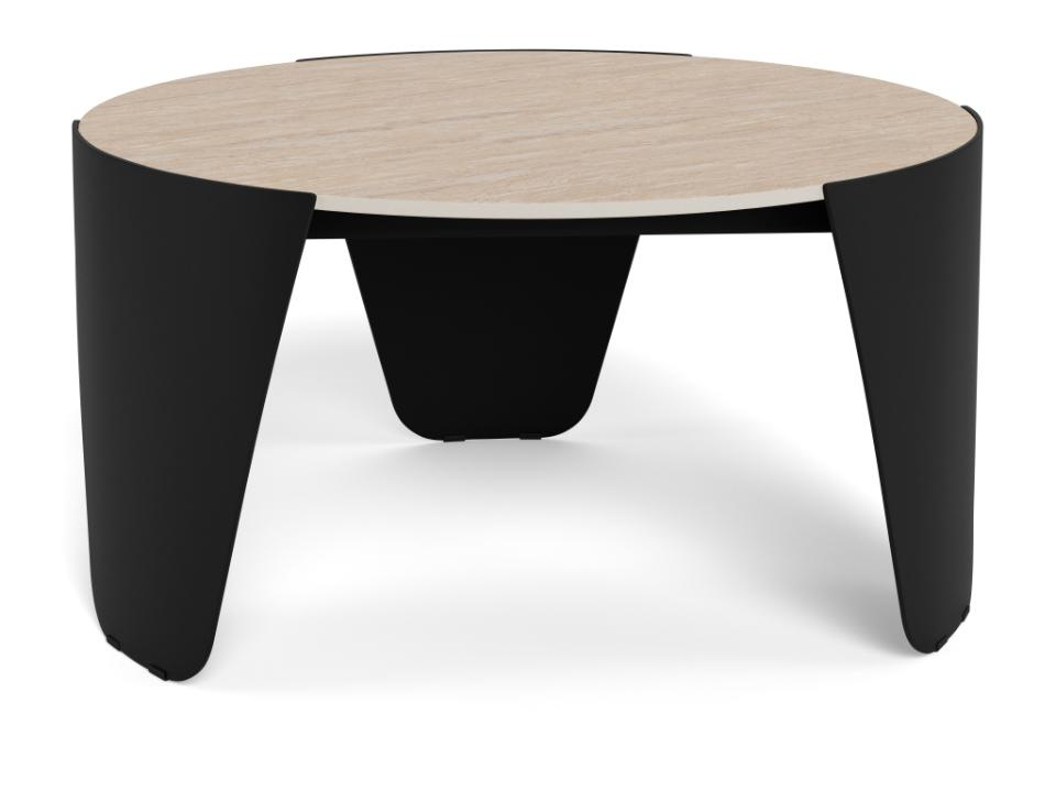 Embrace the new look of this contemporary coffee table. It combines modern and practical materials in an elegant yet understated design. The flat legs, made of black steel, complement the round top adorned with a subtle beige motif. This is a table that will refresh any modern living room.