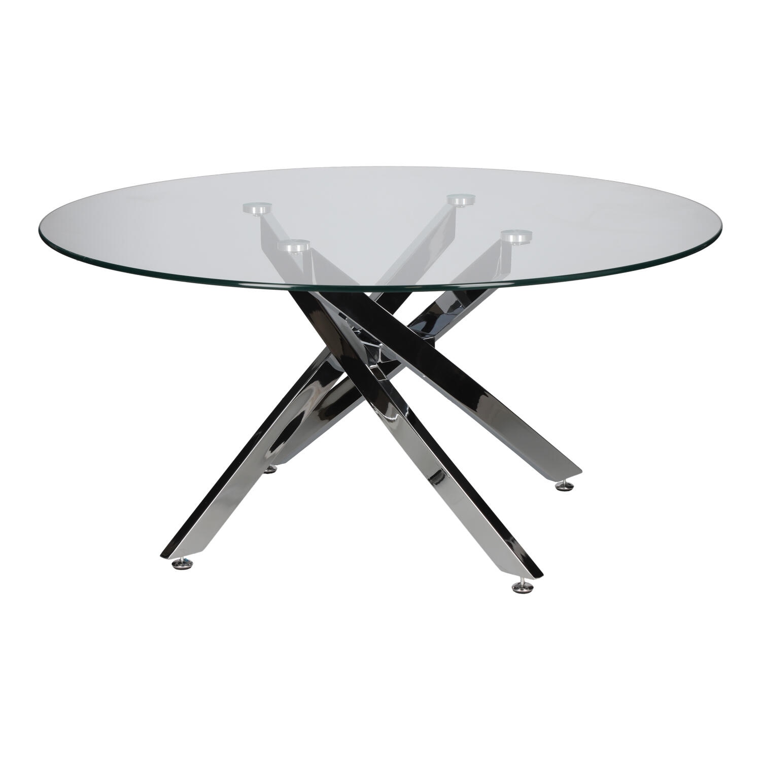 Stolik kawow Amber to minimalistyczny mebel, który doda wnętrzu klasy.Wielofunkcyjny: stolik ma stylowy wygląd i klasyczną konstrukcję zblatem o okrągłym kształcie. Może być stosowany w salonie, jako stolik centralny lub w poczekalni jako stolik na czasopisma. Szkło 8 mm hartowane szkło. Nogi chromowane na wysoki połysk. Wymaga montażu. Maksymalne obciążenie 80 kg.