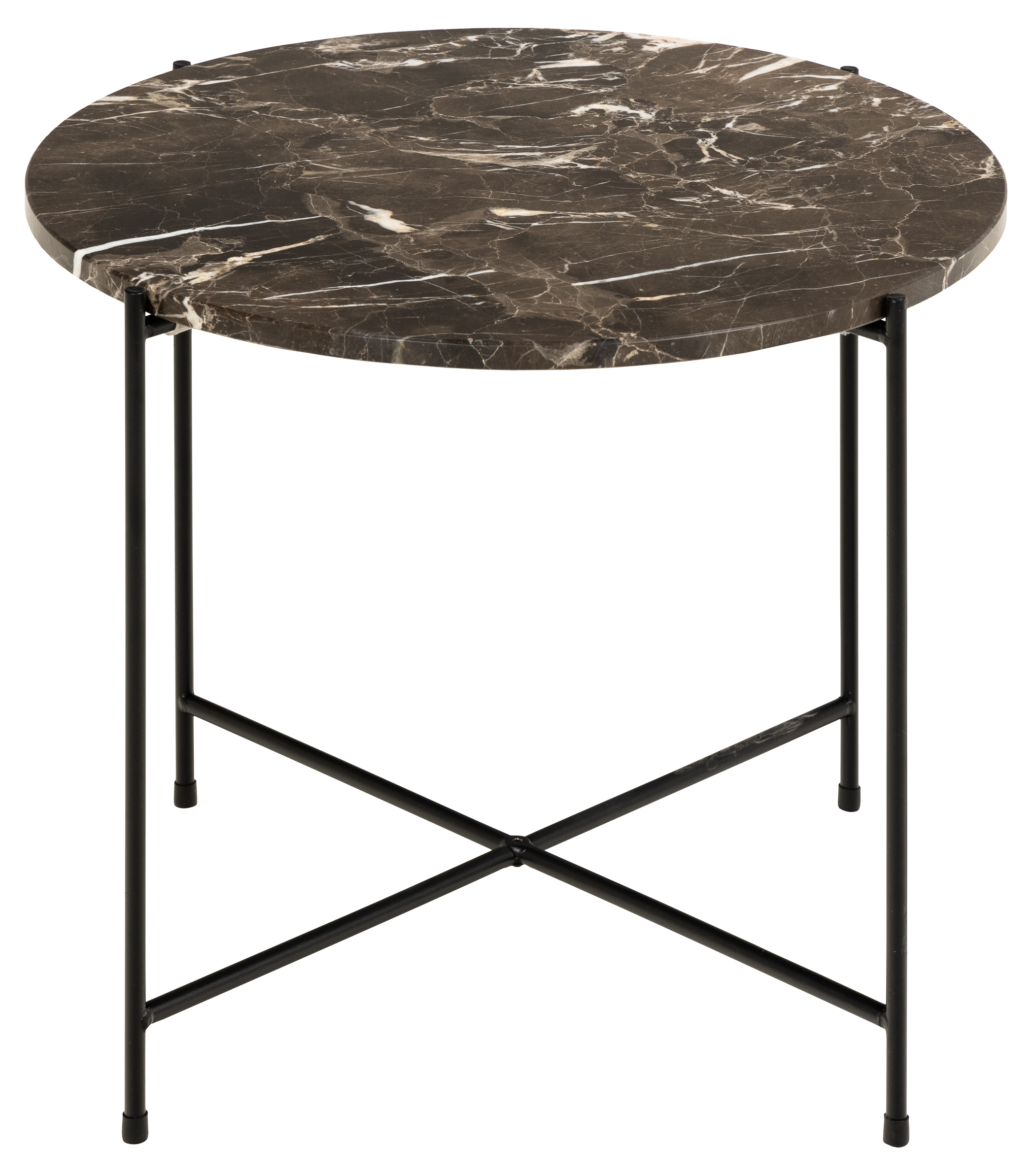 Stolik kawowy Avila to niewielki, elegancki mebel idealny do salonu w stylu glamour. Posiada okrągły blat z brązowego marmuru oraz malowaną proszkowo podstawę złożoną z czterech nóg w kolorze czarnym. Nogi stolika zabezpieczone są nakładkami z tworzywa sztucznego i połączone dodatkowo dwoma krzyżującymi się elementami. Całość sprawia wrażenie bardzo lekkiej i delikatniej, jednak odpowiednia konstrukcja sprawia, że stolik jest w pełni stabilny. Ze względu na elegancki design stolik Avila z powodzeniem może stać się ozdobą twojego wnętrza. Ilośc kartonów: 1 Wymiary kartonów: 55,5x7x55,5cm Waga kartonów: 10kg