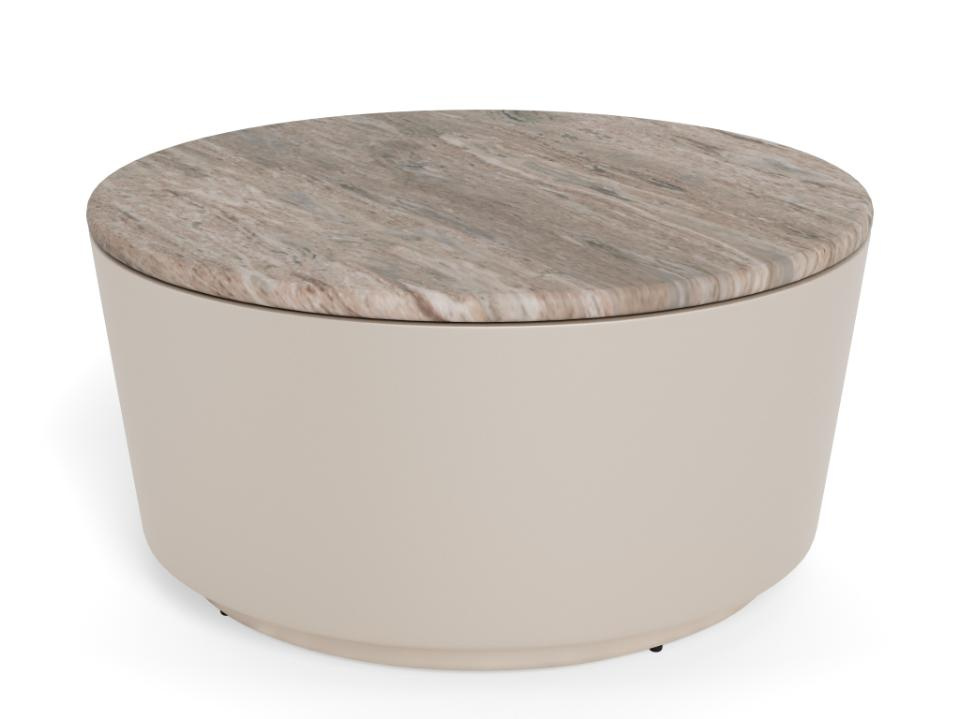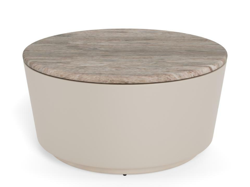 Okrągły stolik kawowy Cangas, blat z polerowanego marmuru Toronto w kolorze szarym, podstawa z szarej stali malowanej proszkowo, ?80 x 41,5 cm