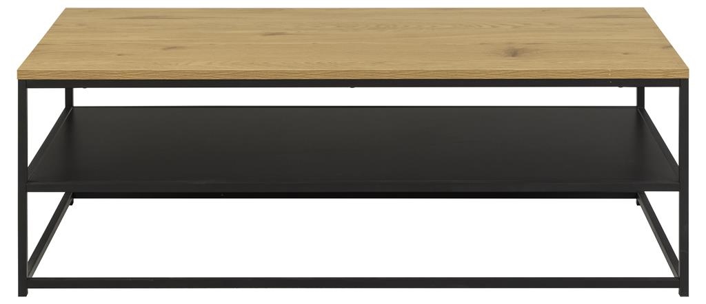 Stolik kawowy Gila w nowoczesnym, industrialnym stylu. Idealny do salonu, sypialni czy holu. Posiada prostokątny blat z płyty MDF w okleinie dębowej, pod którym znajduje się czarna półka. Całość opiera się na metalowej konstrukcji malowanej proszkowo na kolor czarny. Odpowienio zaprojektowana konstrukcja zapewnia wyjątkową stabilność. Ilośc kartonów: 1 Wymiary kartonów: 126×63,5×9,5cm Waga kartonów: 22kg