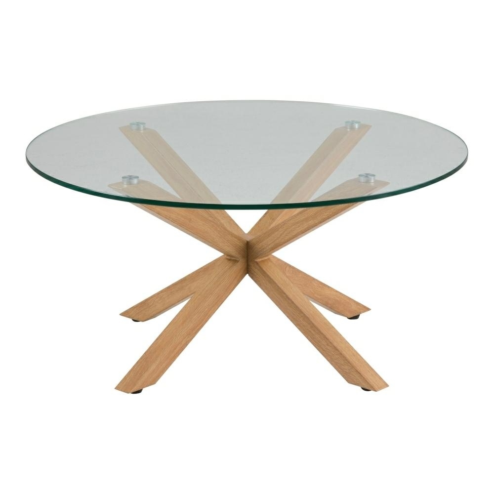 Stolik kawowy Heaven jest jednym ze stolików z tej serii. Stolik powstał z ciekawego połączenia szkła oraz okleiny o fakturze drewna. Blat stolika o grubości 10 mm został zrobiony z transparentnego szkła w kształcie koła. Podstawa stolika to cztery stalowe nogi z okleiną imitującą drewno dębu. Nogi stolika zostały tak skonstruowane, że wyglądają, jakby w miejscu skrzyżowania przenikały przez siebie. Całą konstrukcję utrzymują metalowe wkręty, które gwarantują stabilność stolika. Waga: 17,2 kg. Wymiary kartonu: 9,8cm x 92,5cm x 91,5cm