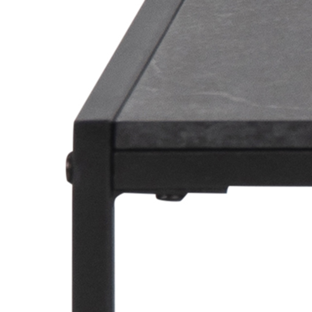 Stolik Oxford wyróżnia się niezwykłą prostotą i efektownym wykończeniem. Stolik został zrobiony z kwadratowego blatu. Blat to niezwykle wytrzymała płyta MDF pokryta laminatem imitującym czarny marmur. Podstawą stolika są czarne metalowe płozy. Podstawa stolika została pomalowana proszkowo, więc jest odporna na uszkodzenia mechaniczne. Lekki stolik Oxford będzie ciekawie wyglądać jako stolik przy sofie. Stolik dostępny jest również w innych rozmiarach. Waga stolika: 8,2 kg Wymiary kartonu: 7x102x83,6 cm