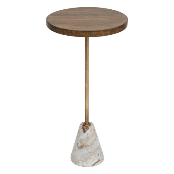 Okrągły stolik boczny Prunus, blat z matowego trawertynu lakierowanego na beżowo, podstawa z drutu ze stali chromowanej. Ten stolik boczny spodoba się zarówno minimalistom, jak i maksymalistom. Wyróżnia się efektownym blatem z trawertynu, wspartym na chromowanej drucianej podstawie. Wyważony kontrast między proporcjami nadaje projektowi lekkiego uroku. Z łatwością dopasuje się do każdego stylu wnętrza. Waga stolika: 14,4kg. Max. obciążenie 20 kg Wymiary kartonów: 14x66x77cm i 59,5x31x11cm