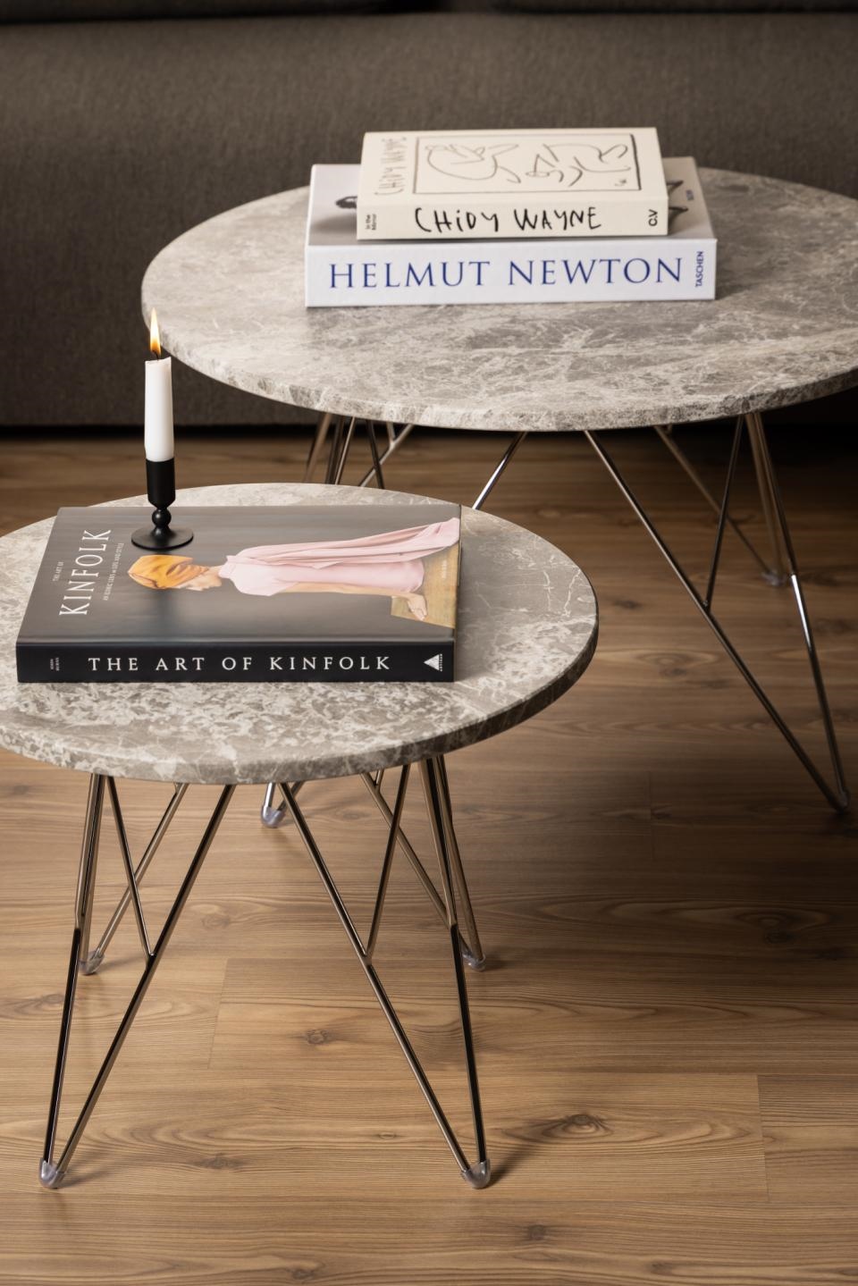 Stolik kawowy Prunus 80cm marmur szary/ chrom