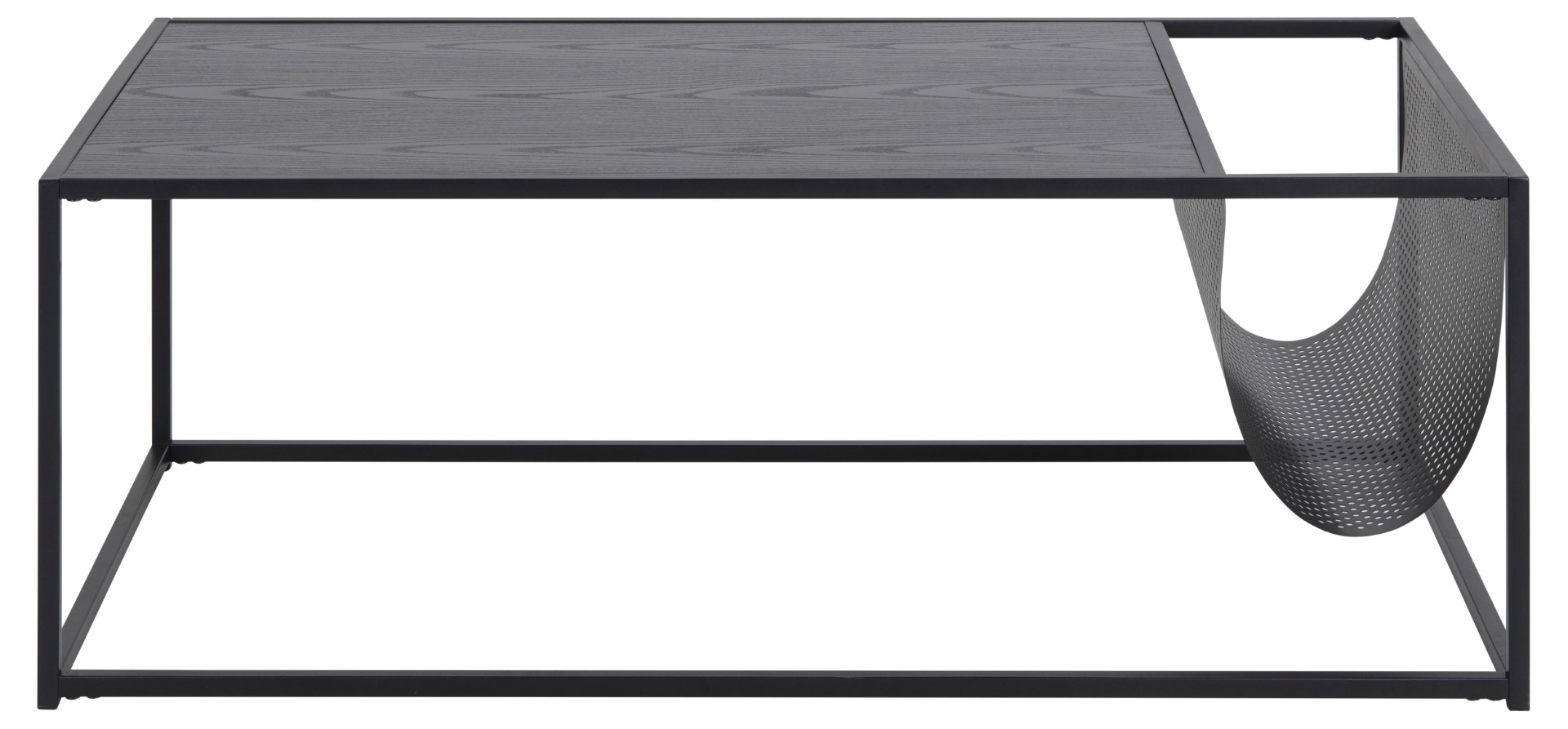 Stolik kawowy z gazetnikiem, to doskonałe rozwiązanie dla osób , które lubią mieć swoją prasę zawsze przy sobie podczas wypoczynku. Miejsce jakim jest metalowy, ażurowy gazetnik w kolorze czarnym doskonale sprawdzi się jako miejsce na aktualną prase, piloty od telewizora czy ciepły, ulunbiony koc, który towarzyszy nam podczas spędzania wieczorów na kanapie. Blat stolika został fornirowany okleiną w kolorze czarnym. Matowa, metalowa, czarna podstawa jest lekka i prosta. Stolik wymaga montażu. Ilość kartonów: 1 Wymiary kartonów: 101,5x63x8,5cm Waga kartonów: 10,8kg