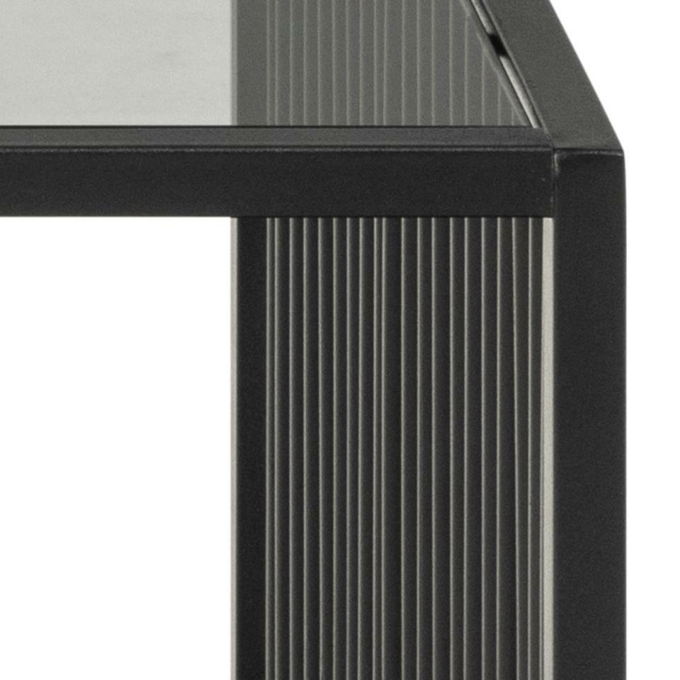 Stolik kawowy Strington, prostokątny, blat z matowej, czarnej, szorstka melamina Izmir i przydymione szkło hartowane, podstawa z drutu z matowej, czarnej, szorstka stal malowana proszkowo, 120x60x40 cm