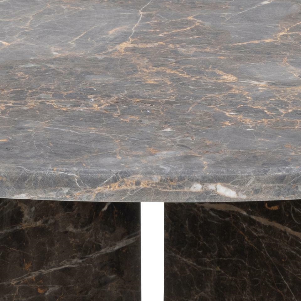 Okrągły stolik kawowy Vega, blat i podstawa to matowy marmur lakierowany w kolorze Marron. Ten stolik kawowy wprowadzi do salonu ponadczasowe wyrafinowanie. Okrągły blat i podstawa w kształcie litery V zostały wyrzeźbione w czystej formie, która nadaje pomieszczeniu charakteru. Wykonany z brązowego marmuru, kamień naturalnie różni się kolorem, strukturą i powierzchnią, dzięki czemu każdy egzemplarz jest wyjątkowy. Jest to rodzaj wyrazistego elementu, który pozostaje aktualny bez względu na trendy. Waga stolika 78 kg. Max. obciążenie 20 kg. Wymaga montażu. Wymiary kartonów: 99x14x111cm i 62x49x68 cm