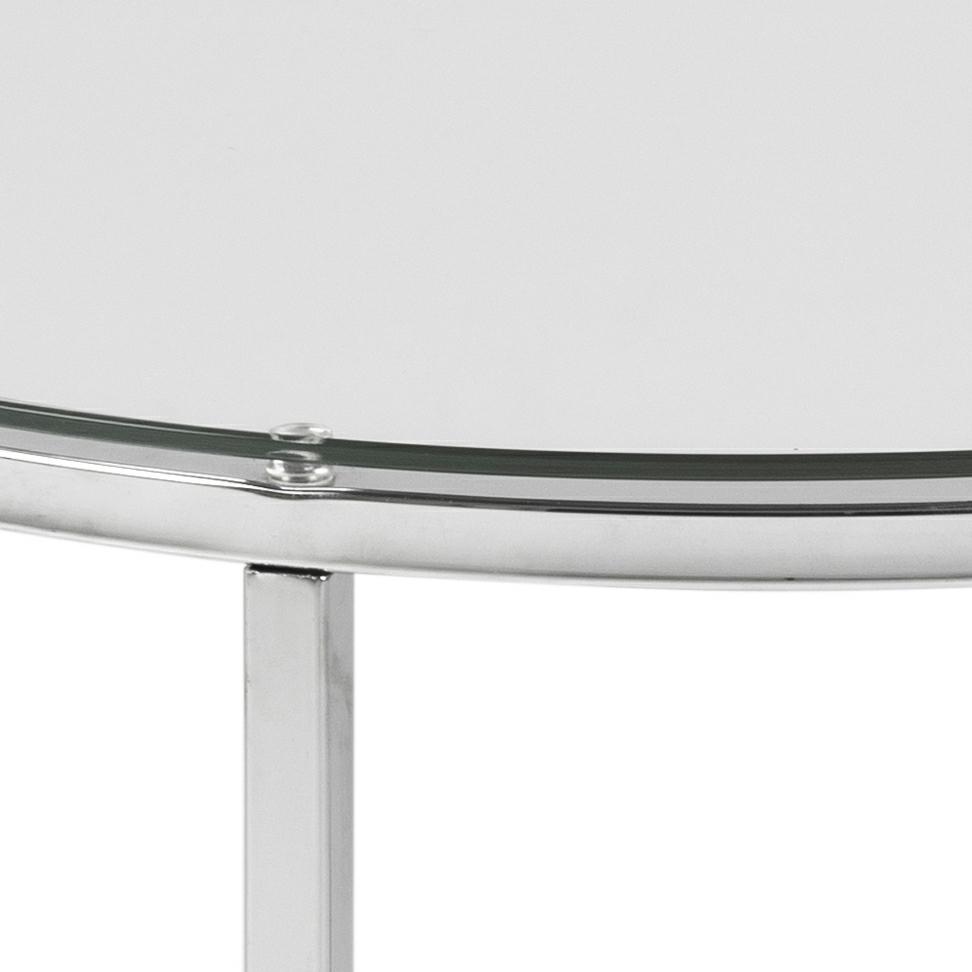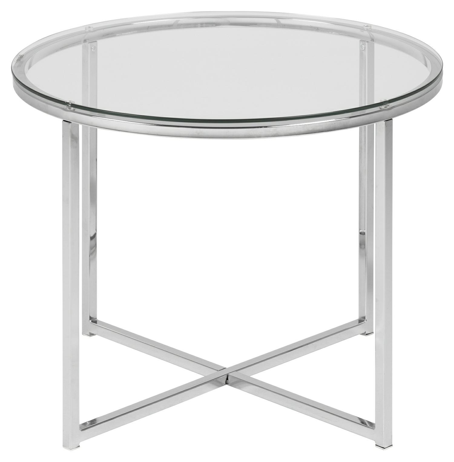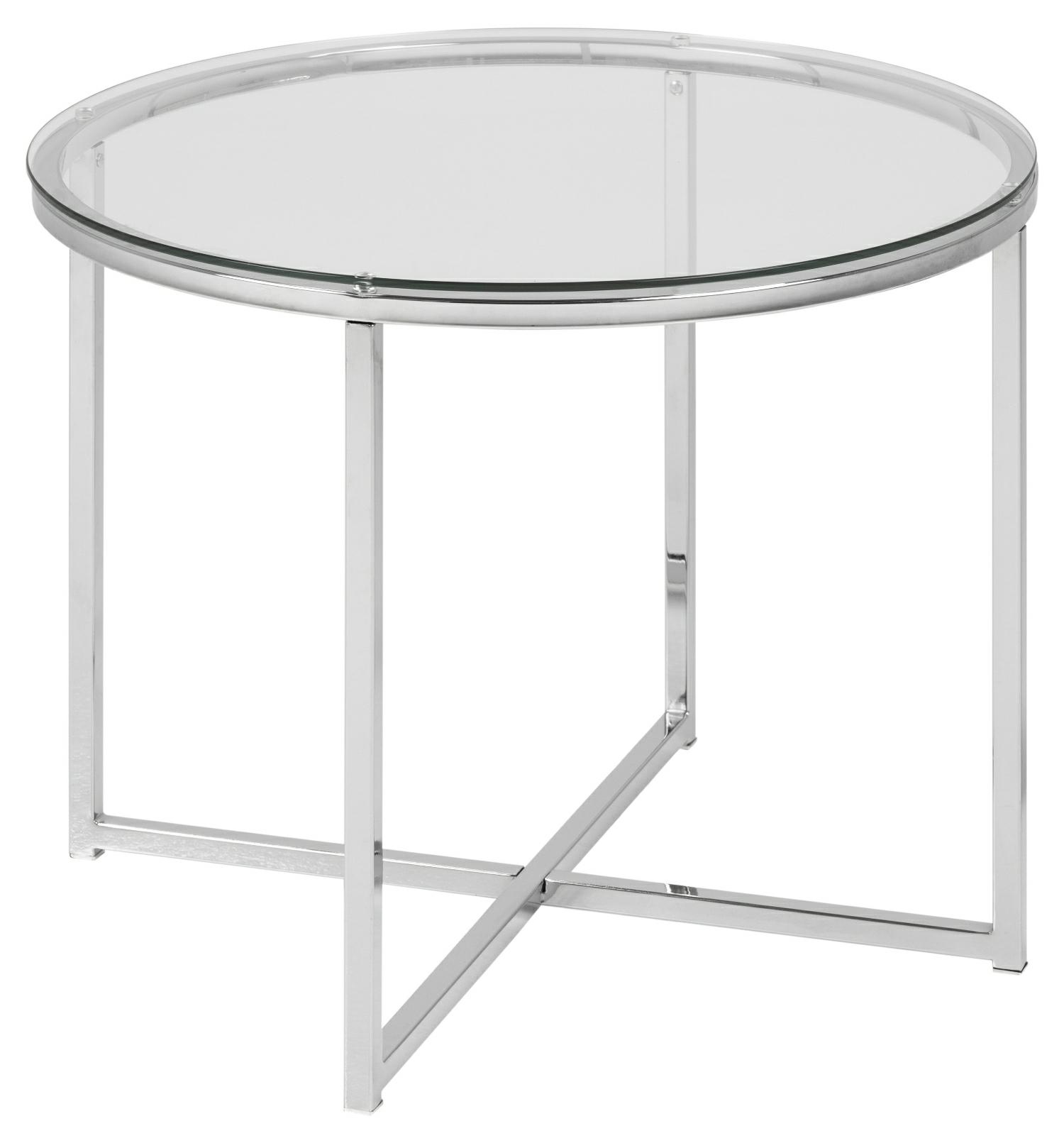 Stolik okrągły Cross wykonany zostal z chromowanego metalu oraz transparentnego szkła hartowanego, stanowiącego taflę blatu. Stolik doskonale odnajdzie się w industrialnych, loftowych oraz nowoczesnych wnętrzach wnosząć elegancję i styl. Stolik wymaga montażu, maksymalne obciążenie wynosi 30kg, nie nadaje się na zewnątrz. Sprawdzi się w przestrzeniach komercyjnych, biurowych, hotelowych oraz domowych.