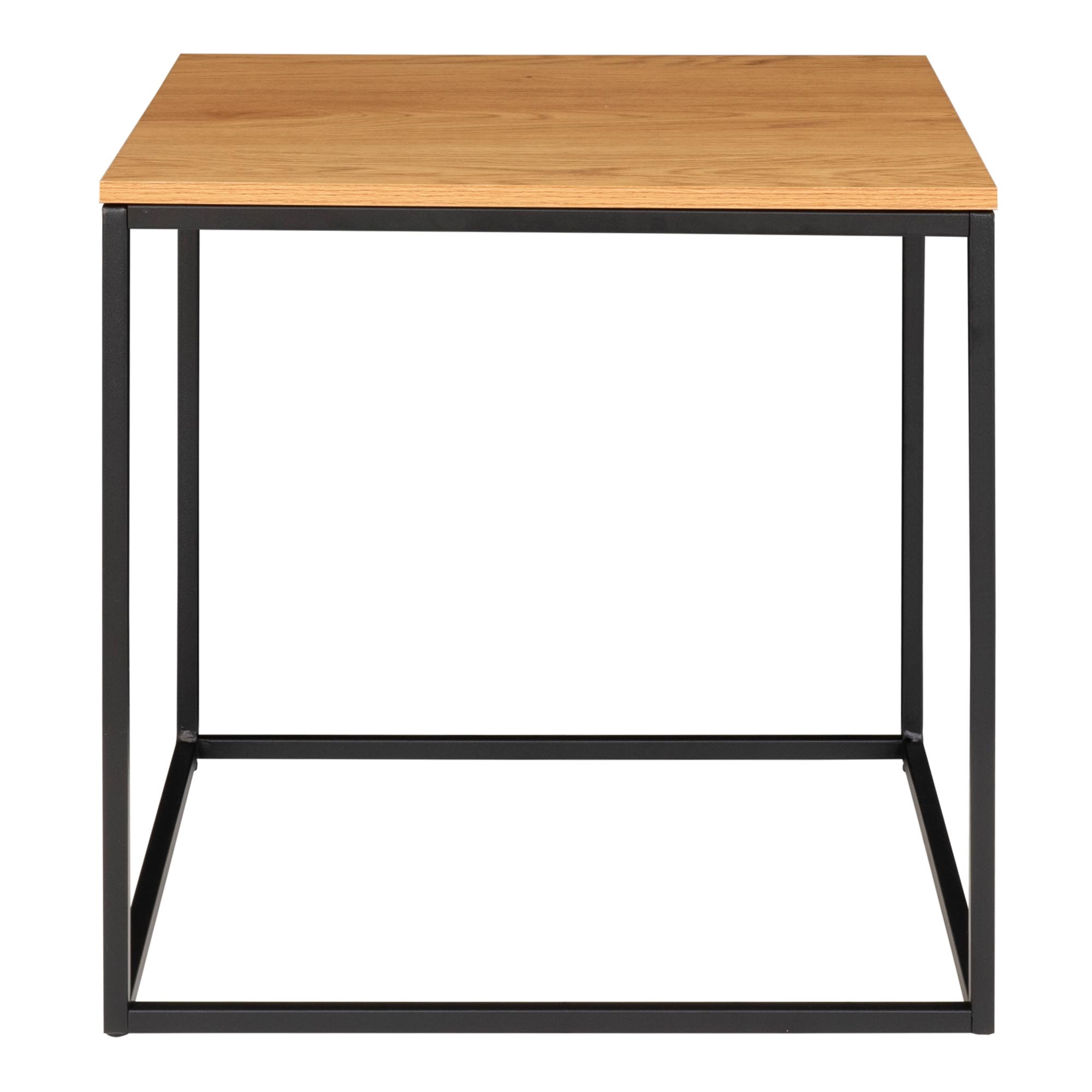 Stolik pomocniczy Vita sprawdzi się jako dodatkowy stolik przy sofie lub jako stolik pod kwiata. Stolik Vita wykonany został z metalu malowanego proszkowo na czarno oraz blatu z płyty wiórewej ozdobionej okleiną imitującą słoje drewna. Stolik Vita to element minimalistycznej kolekcji Vita. Wymaga montażu Wymiary kartonu: 48,5×47,5x5cm Waga: 4kg