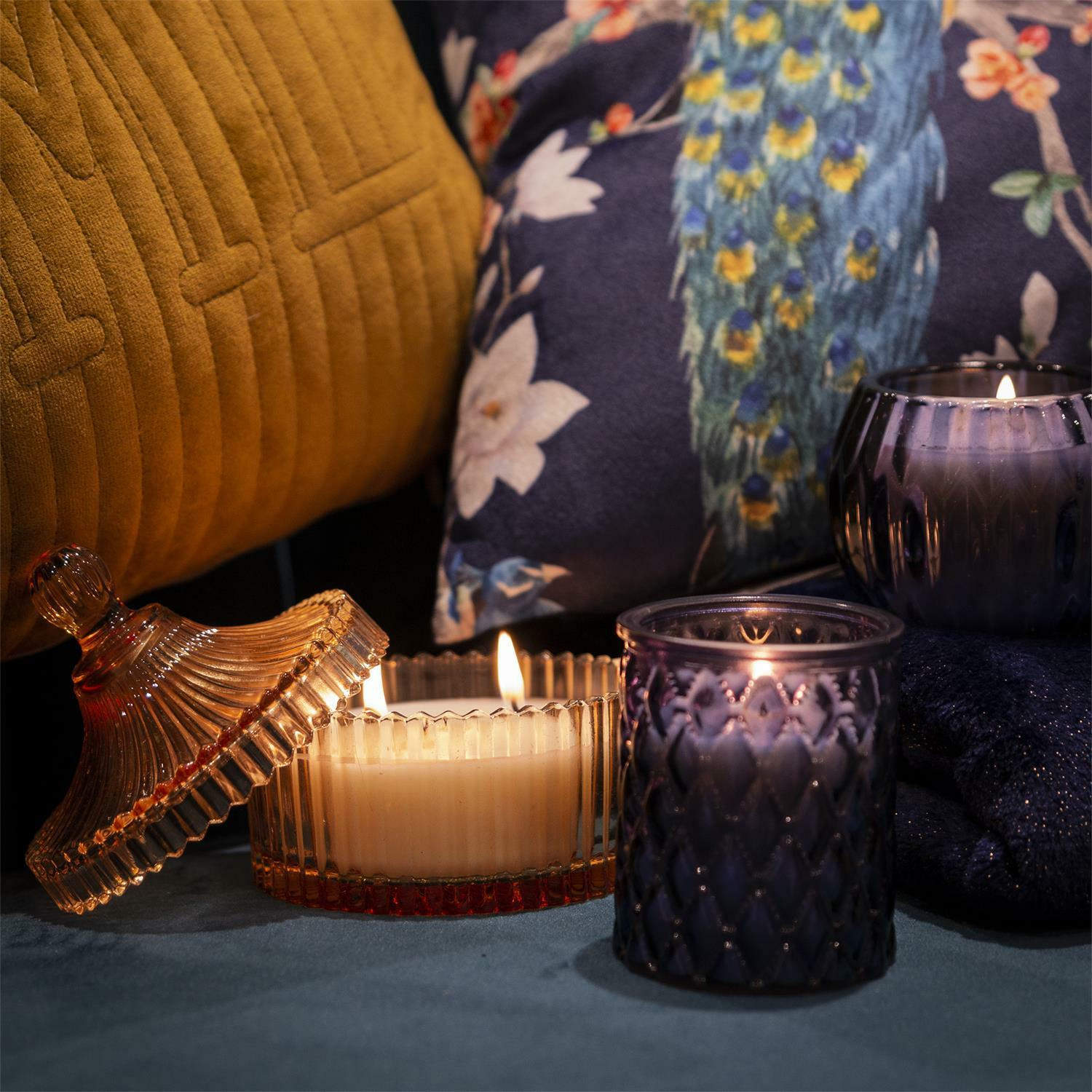 Będziesz oczarowany świecą w świeczniku inspirowanego szkłem bohemskim. Świeca w pojemniku z pokrywką w komplecie daje nie tylko ciekawie rozproszone światło podczas gdy się pali. Świeca jest również fantastyczną ozdobą gdy się nie pali. Świeca perfumowana o zapachu orchidei doda przyjemnego świeżego zapachu.- Szklana obudowa – Trwałość: 10 h – Waga: 60 g