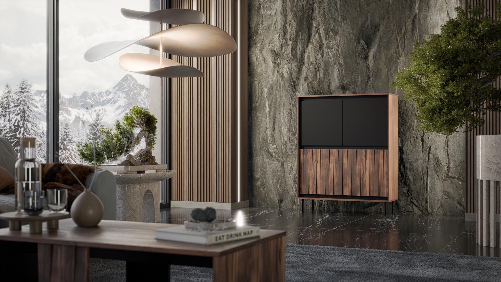 wymiary: 102/40/128 cm; materiał: płyta meblowa laminowana / MDF foliowany / stal malowana proszkowo, kolor: orzechowy – czarny