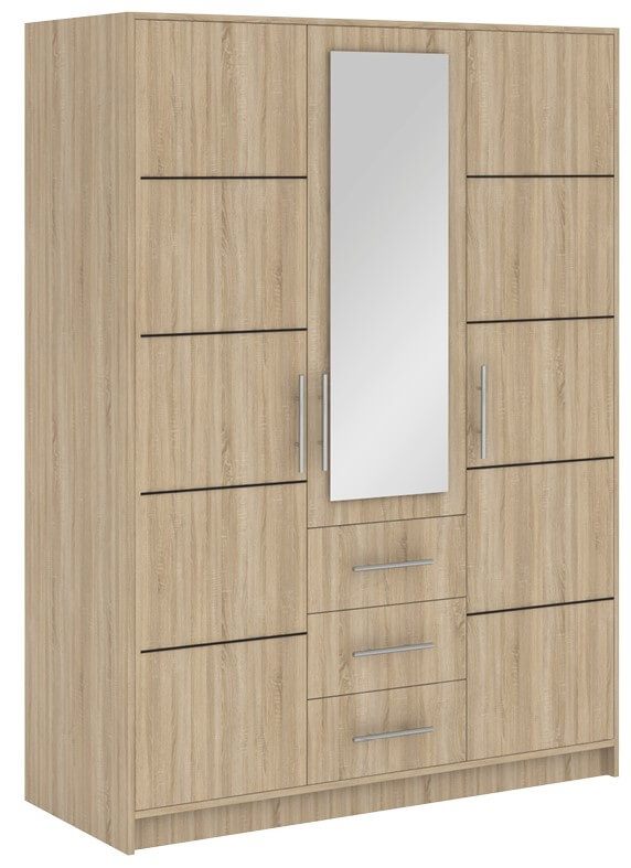 Wyposażenie: 1 drążek, półki, 3 szuflady, listwa dekoracyjna