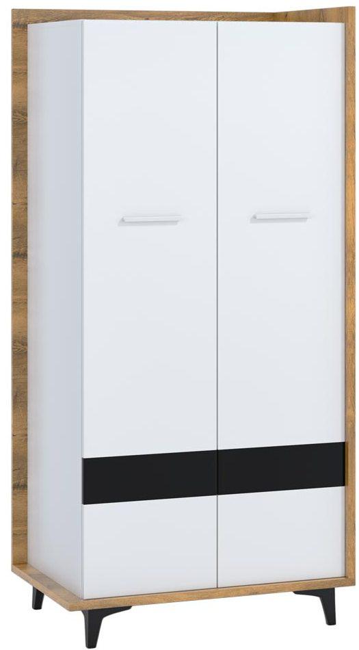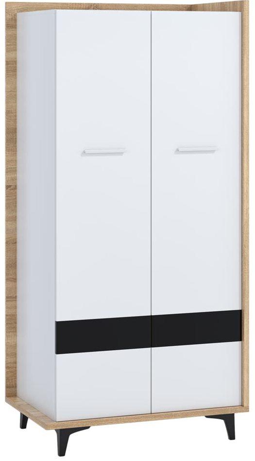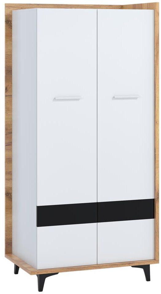 Szafa Box 10 składa się z części dwudrzwiowej. Za drzwiami znajdują się dwie półki oraz drążek na wieszaki. Kolekcja Box pozwala na aranżacje takich pomieszczeń jak salon, pokój dzienny oraz przedpokój.