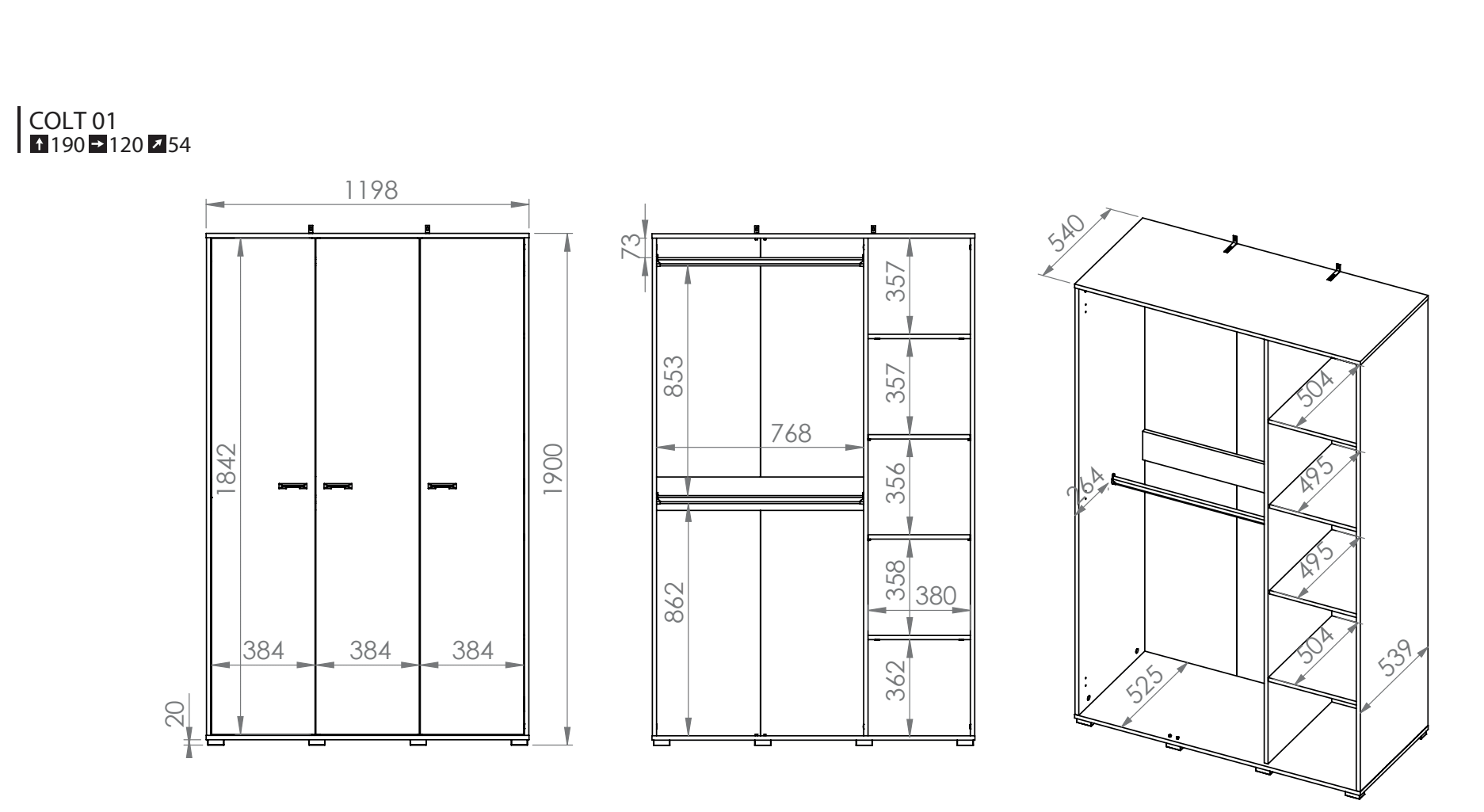 Wymiary w cm szerokość: 120 | wysokość: 190 | głębokość: 54