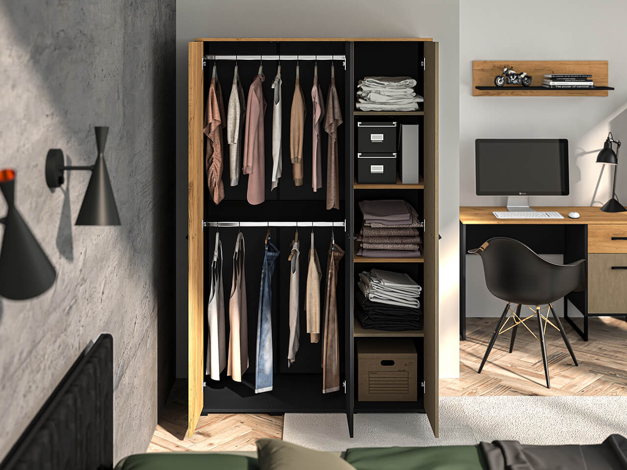 Dąb Craft Złoty + Czarny + Stal Premium