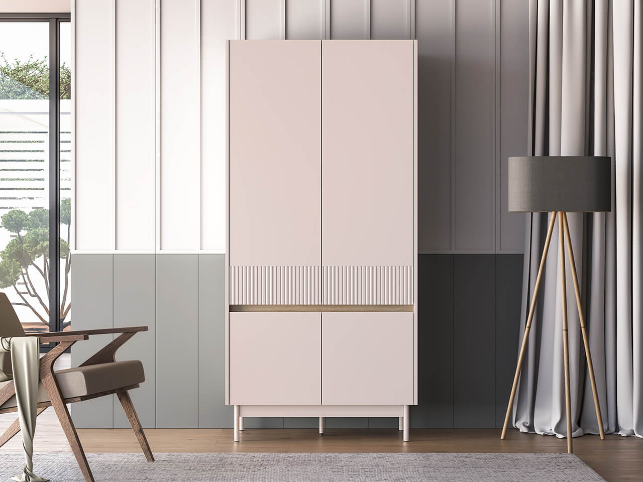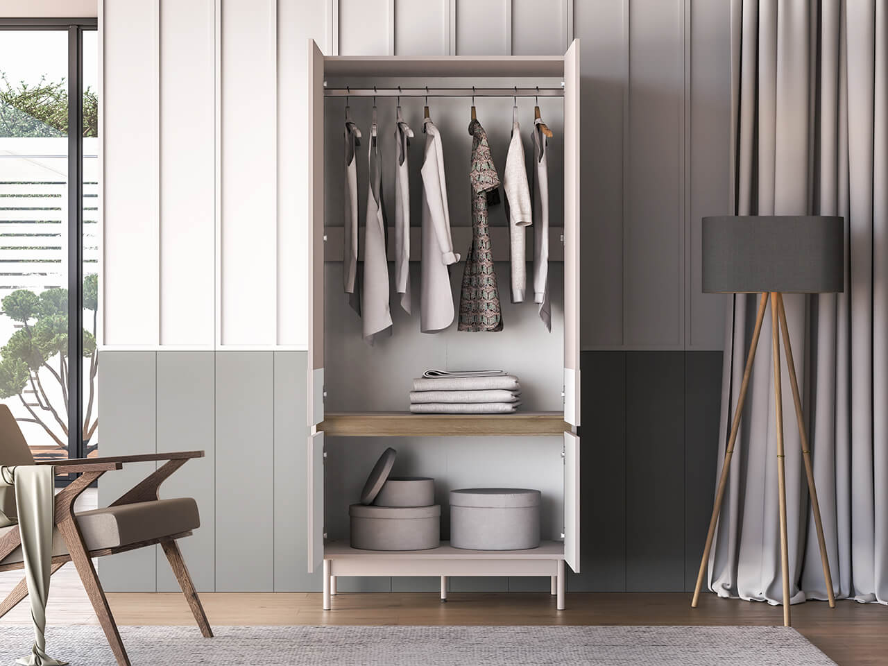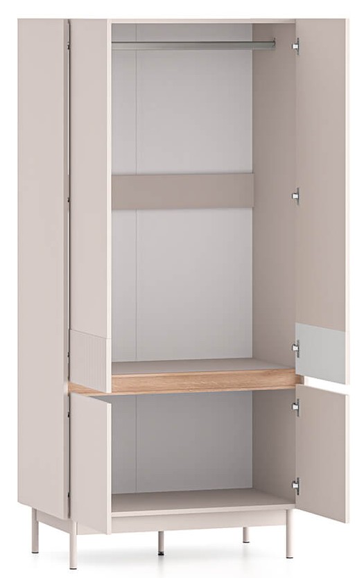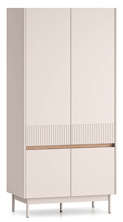 Czterodrzwiowa szafa Dunea 01 to mebel, w którym przechowasz swoją odzież, dodatki oraz domowe tekstylia. Dzięki solidnemu drążkowi umieszczonemu na całej szerokości bryły, z łatwością powiesisz płaszcze, garnitury czy sukienki. Duża pojemność dolnej wnęki pozwoli schować na przykład pościel lub ręczniki. Wybierz szafę Dunea i zachowaj porządek w swoim wnętrzu.